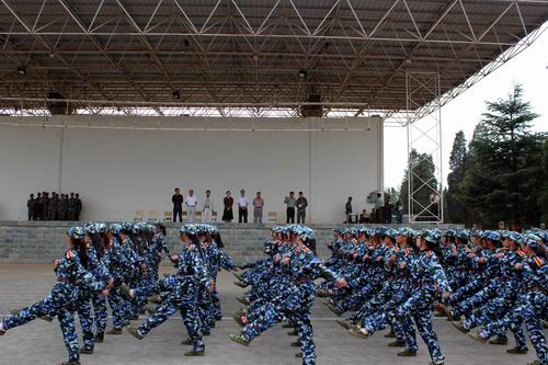 這次軍訓,承訓部隊官兵和帶隊老師們以身作則、恪盡職守,參訓學生勇往直前、斗志昂揚,使軍訓工作得到順利推進。院領導的到來,進一步激勵了同學們的士氣,他們精神抖擻展示了13天來的訓練成果:正步行進、步伐變換、軍體拳、韻律操……同學們的颯爽英姿贏得了院領導贊許的目光。