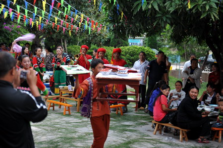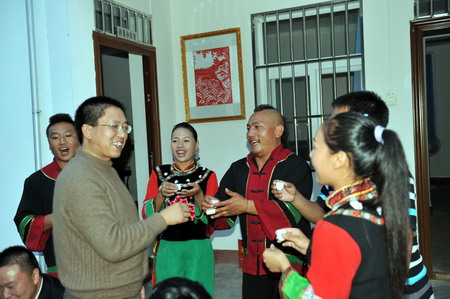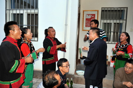 南澗縣人民政府對開辦培訓(xùn)班高度重視,對來自云南農(nóng)業(yè)職業(yè)技術(shù)學(xué)院的領(lǐng)導(dǎo)和老師以彝族同胞的最高禮儀南澗職業(yè)中學(xué)師生精彩的“跳菜歌舞表演”歡迎尊貴的客人,用嘹亮的嗩吶、高亢的彝族原生態(tài)敬酒歌和獨特的“跳菜舞蹈”表達(dá)南澗人民的熱情好客!學(xué)院黨委書記崔金賦、院長彭志遠(yuǎn)一行深深地被彝族同胞的美酒和震撼的歌舞感染著,陶醉著……