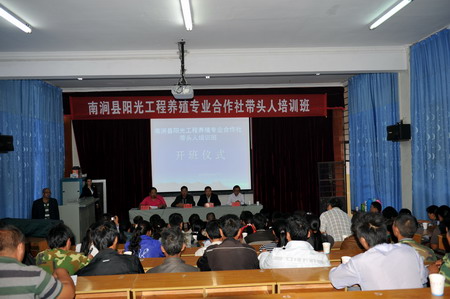 此次“南澗縣陽光工程養(yǎng)殖專業(yè)合作社帶頭人培訓(xùn)班”得到了省農(nóng)業(yè)廳、省勞轉(zhuǎn)辦、云南農(nóng)業(yè)職業(yè)技術(shù)學(xué)院的高度重視和大力支持。學(xué)院為辦好培訓(xùn)班派出精兵強將,有既懂經(jīng)濟又懂三農(nóng)政策的專家李冀明老師,有養(yǎng)殖方面的養(yǎng)兔副教授董仲生老師、養(yǎng)雞副教授徐英老師,也有云南省著名企業(yè)“綠盛美地”的養(yǎng)殖老總,確保了培訓(xùn)班在短短的三天中使50名學(xué)員開擴眼界,學(xué)到在養(yǎng)殖實踐中難以解決的知識技能,學(xué)員反映良好。