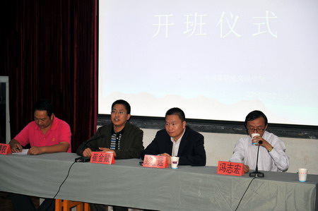 2011年10月8日上午8:30,云南農(nóng)業(yè)職業(yè)技術(shù)學(xué)院與云南省南澗縣聯(lián)合舉辦的“南澗縣陽光工程養(yǎng)殖專業(yè)合作社帶頭人培訓(xùn)班”在南澗縣職業(yè)中學(xué)綜合樓階梯教室舉行了隆重而簡短的開班典禮。學(xué)院黨委書記崔金賦、院長彭志遠(yuǎn),學(xué)院黨院辦主任凌軍、組織部部長張建才、對外交流與合作處許建民處長、趙茜副處長、黨院辦副主任楊筱瑩、宣傳部副部長蔡永生以及一同前往的三位授課專家,南澗縣副縣長馮志宏、縣畜牧局楊清權(quán)局長、縣職業(yè)中學(xué)吳校長等出席,南澗縣養(yǎng)殖專業(yè)戶五十位學(xué)員參加了開班典禮。南澗縣畜牧局楊清權(quán)局長主持開班典禮。