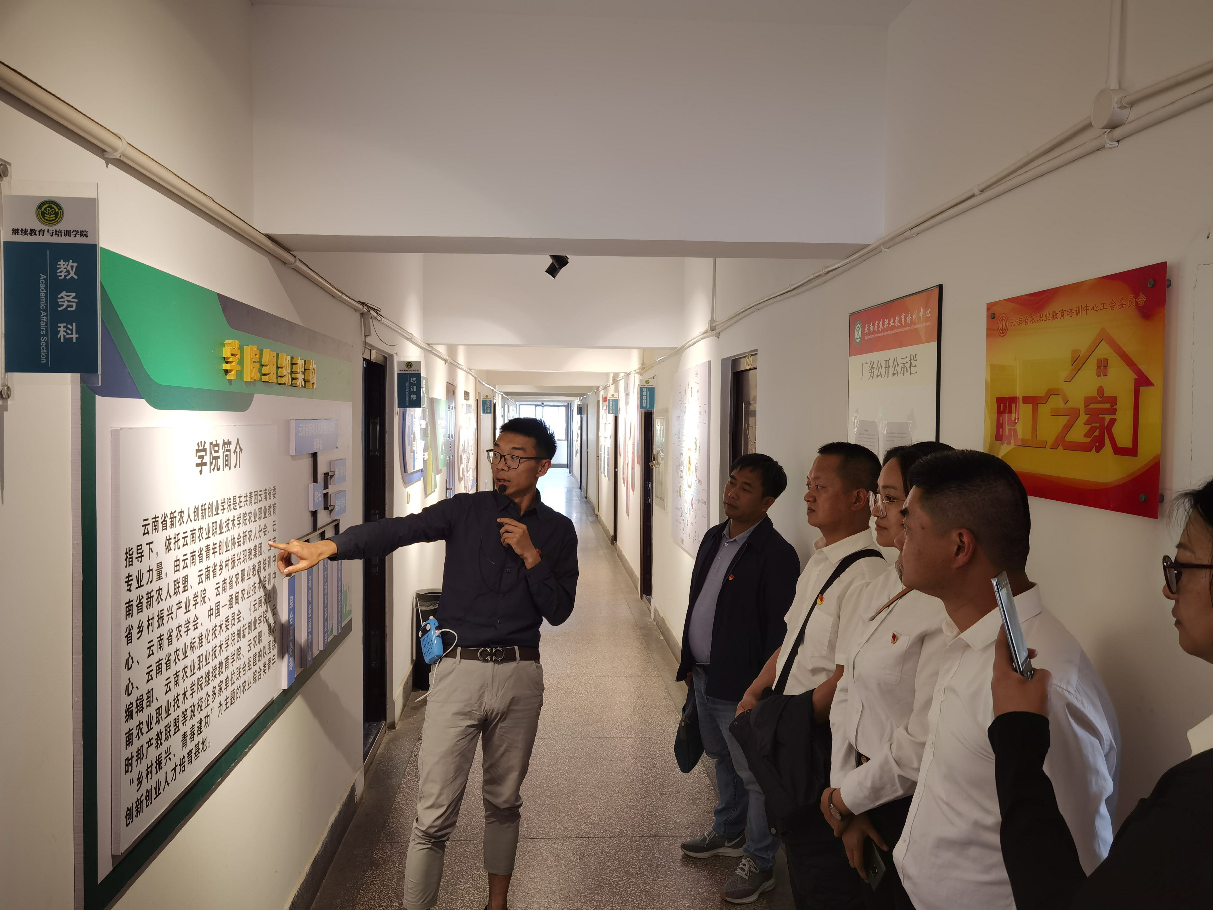 交流結束后,臨時黨支部全體成員在王亞楠同志的帶領講解下,先后參觀了我院產教聯盟綠色食品展銷區、少數民族農特產品展銷展柜、黨建花園、高原特色農業產業品牌孵化中心以及云南省新農人創新創業學院學院。