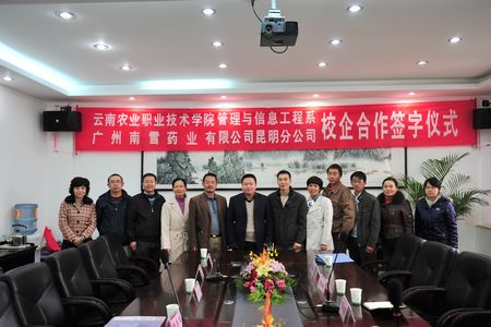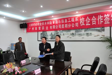 廣州南雪藥業有限公司昆明分公司總經理潘則宏在致辭中強調,與我院管理與信息工程系合作是一種榮幸,表示要努力把雙方的合作辦成功!展望在深化合作的基礎上能夠在科研項目合作上也有所拓展。