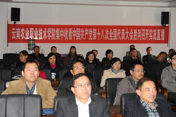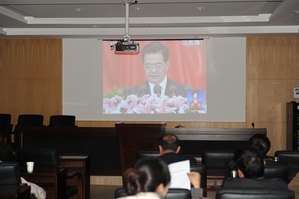11月8日上午9:00,學(xué)院組織黨員干部在茭菱校區(qū)辦公樓三樓報(bào)告廳集中收看黨的第十八次全國(guó)代表大會(huì)開(kāi)幕式,認(rèn)真聆聽(tīng)胡錦濤總書(shū)記所作的十八大工作報(bào)告。學(xué)院黨委書(shū)記崔金賦、院長(zhǎng)彭志遠(yuǎn)等領(lǐng)導(dǎo)帶領(lǐng)干部、教師100余人共同觀看。