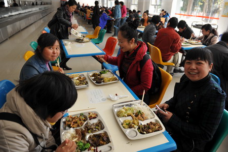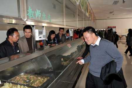 彭志遠(yuǎn)院長(zhǎng)關(guān)心教職工團(tuán)拜餐的質(zhì)量