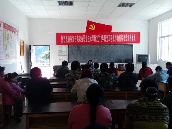 為扎實推進“四群教育”活動,2012年11月19日—12月4日,學院在深入調研的基礎上,結合富民縣農業農村科技發展需求,充分發揮中央農村勞動力培訓陽光工程項目的示范帶動作用和學院師資優勢,重點圍繞學院“四群教育”掛靠聯系村——麥依甸村委會、龍馬村委會、西核村委會、石板溝村委會、則核村委會、糯支村委會、麥場村委會、白石巖村委會等,開展農作物植保員、村級動物防疫員、種子經銷員、水產養殖員培訓,提升富民縣現代農業發展水平。
