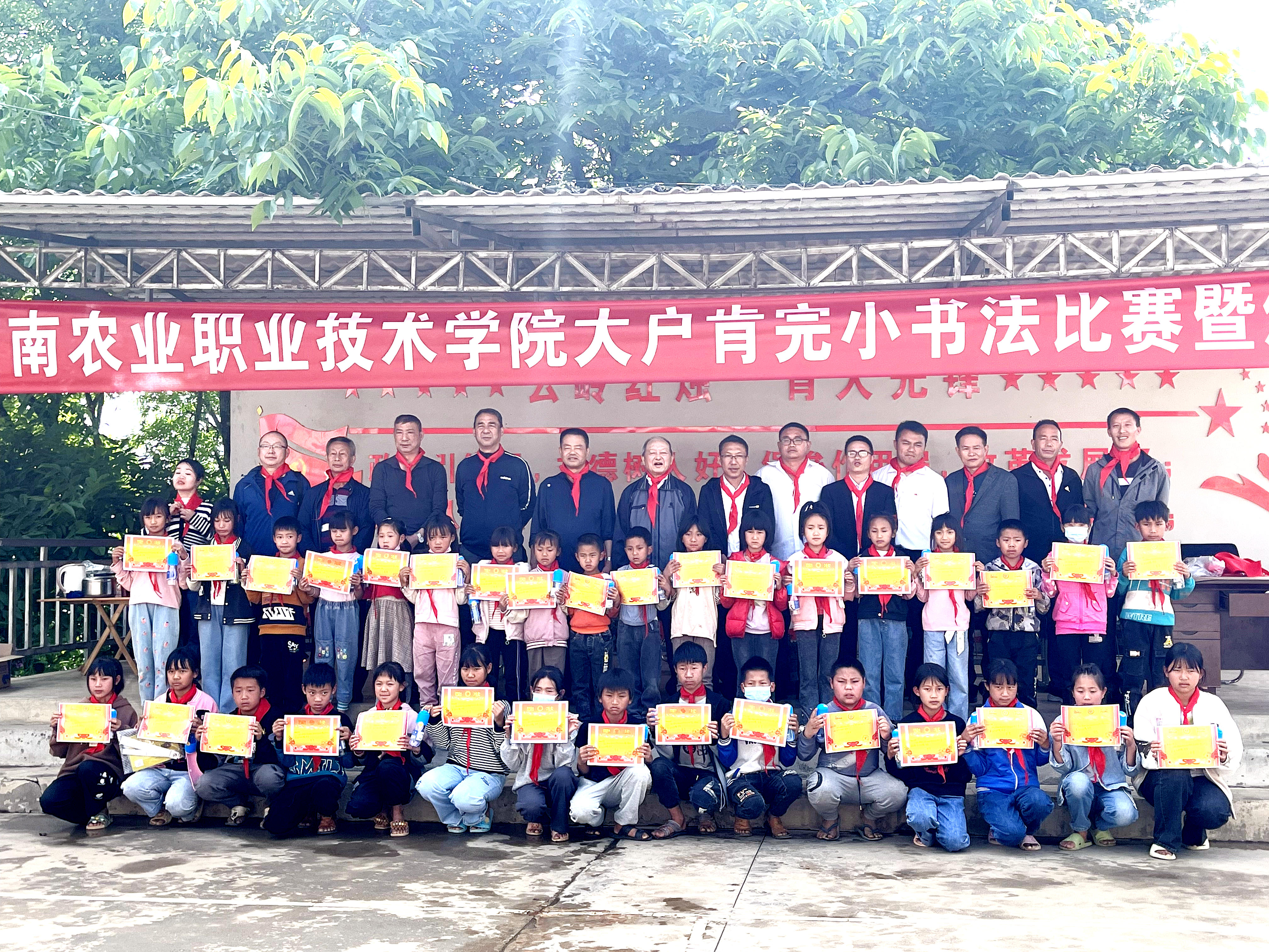 工作組在大興鄉大戶肯完小開展書法培訓課,李鑄聲同志結合現場書寫示范,從書法的意義、毛筆的握法、不同字體的特點、書寫技巧等方面進行了詳細的講授,讓同學們充分了解了書法藝術的魅力。培訓課結束后,42名同學現場進行了書法比賽決賽。