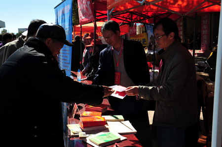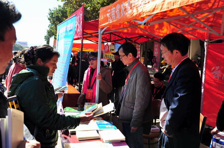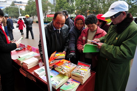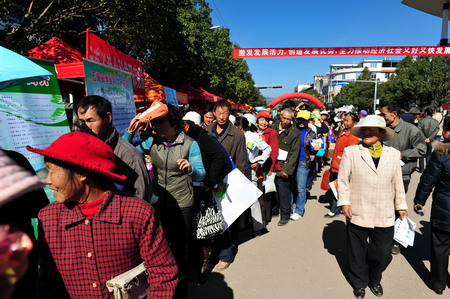 12月19日是祿豐縣人民一個(gè)特別喜慶的節(jié)日,縣城大街小巷張燈結(jié)彩、喜氣洋洋,全縣百姓身著節(jié)日的盛裝潮水般涌向縣城恐龍藝術(shù)廣場(chǎng),向省級(jí)單位的各服務(wù)隊(duì)“搶”科技,“要”圖書,學(xué)文化,排隊(duì)咨詢專家,領(lǐng)取對(duì)聯(lián),欣賞文藝演出……整個(gè)縣城沉浸在一片熱烈、喜慶而歡快的氣氛中。近6個(gè)小時(shí)的科技文化宣傳活動(dòng)受到祿豐縣人民的熱烈歡迎,這是我院從2006年起至今參加的第五次省級(jí)“三下鄉(xiāng)”活動(dòng)。