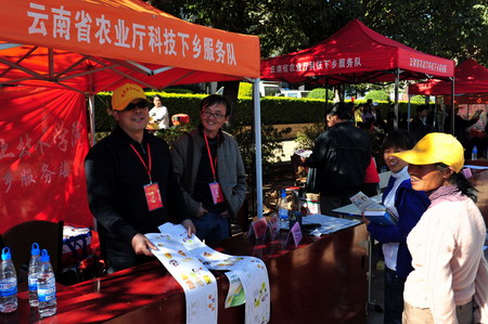 通知中心2010年12月19日上午,云南省2010-2011年度文化科技衛(wèi)生“三下鄉(xiāng)”集中示范活動(dòng)在楚雄州祿豐縣舉行,省委宣傳部、省教育廳、省農(nóng)業(yè)廳、省科技廳、省文化廳、省衛(wèi)生廳、省文明辦、云南農(nóng)業(yè)大學(xué)等省級(jí)16家單位參加了此次活動(dòng)。