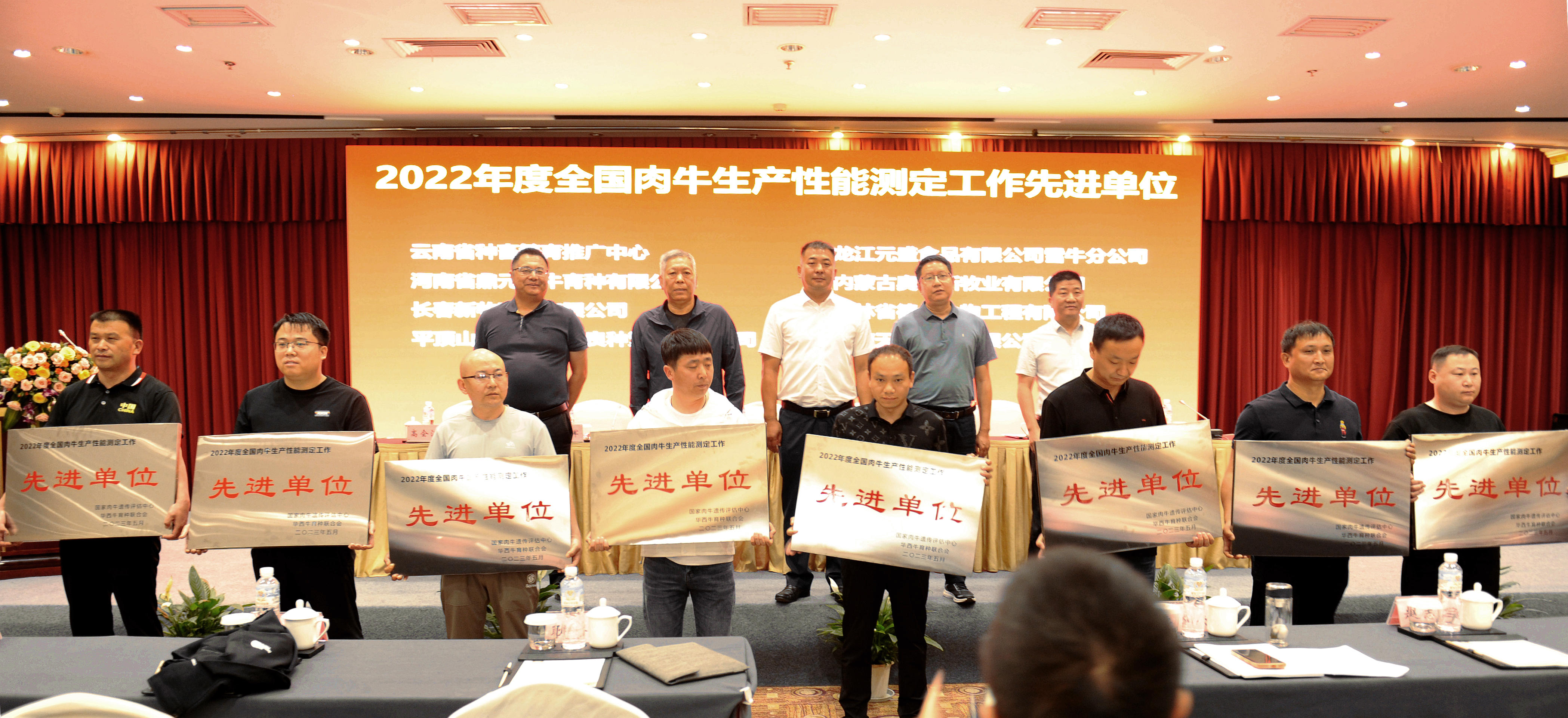 開班儀式上,參會(huì)領(lǐng)導(dǎo)為全國(guó)肉牛生產(chǎn)性能測(cè)定先進(jìn)單位舉行授牌頒獎(jiǎng)儀式。依據(jù)國(guó)家肉牛遺傳評(píng)估中心制定的《2022年度核心育種場(chǎng)生產(chǎn)性能測(cè)定先進(jìn)單位評(píng)選辦法》及指標(biāo),從42家國(guó)家肉牛核心育種場(chǎng)遴選出8家生產(chǎn)性能測(cè)定先進(jìn)單位,分別為云南省種畜繁育推廣中心、河南省鼎元種牛育種有限公司、長(zhǎng)春新牧科技有限公司、平頂山市羴牛畜禽良種繁育有限公司、龍江元盛食品有限公司雪牛分公司、內(nèi)蒙古奧科斯牧業(yè)有限公司、吉林省德信生物工程有限公司、湖南天華實(shí)業(yè)有限公司。