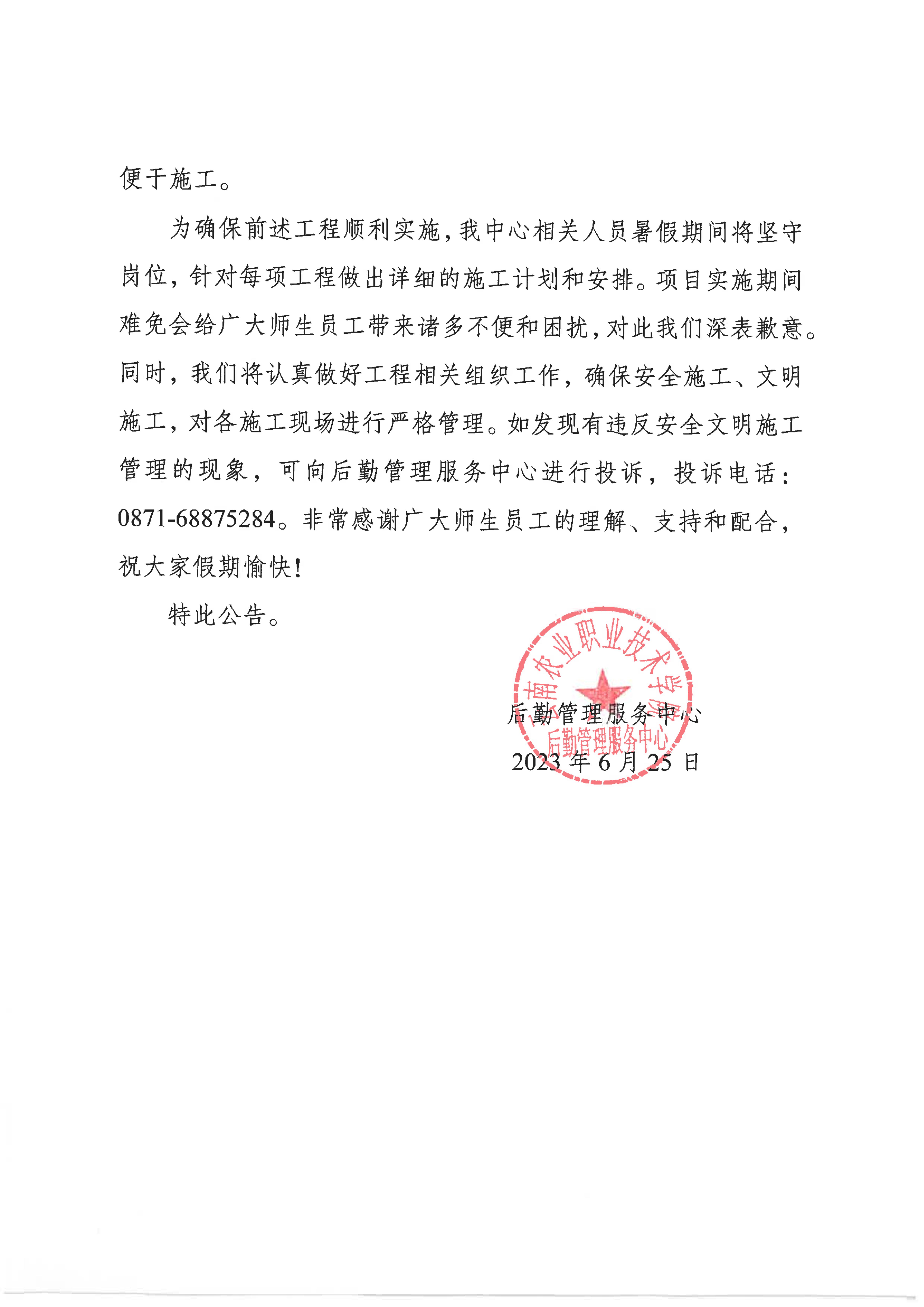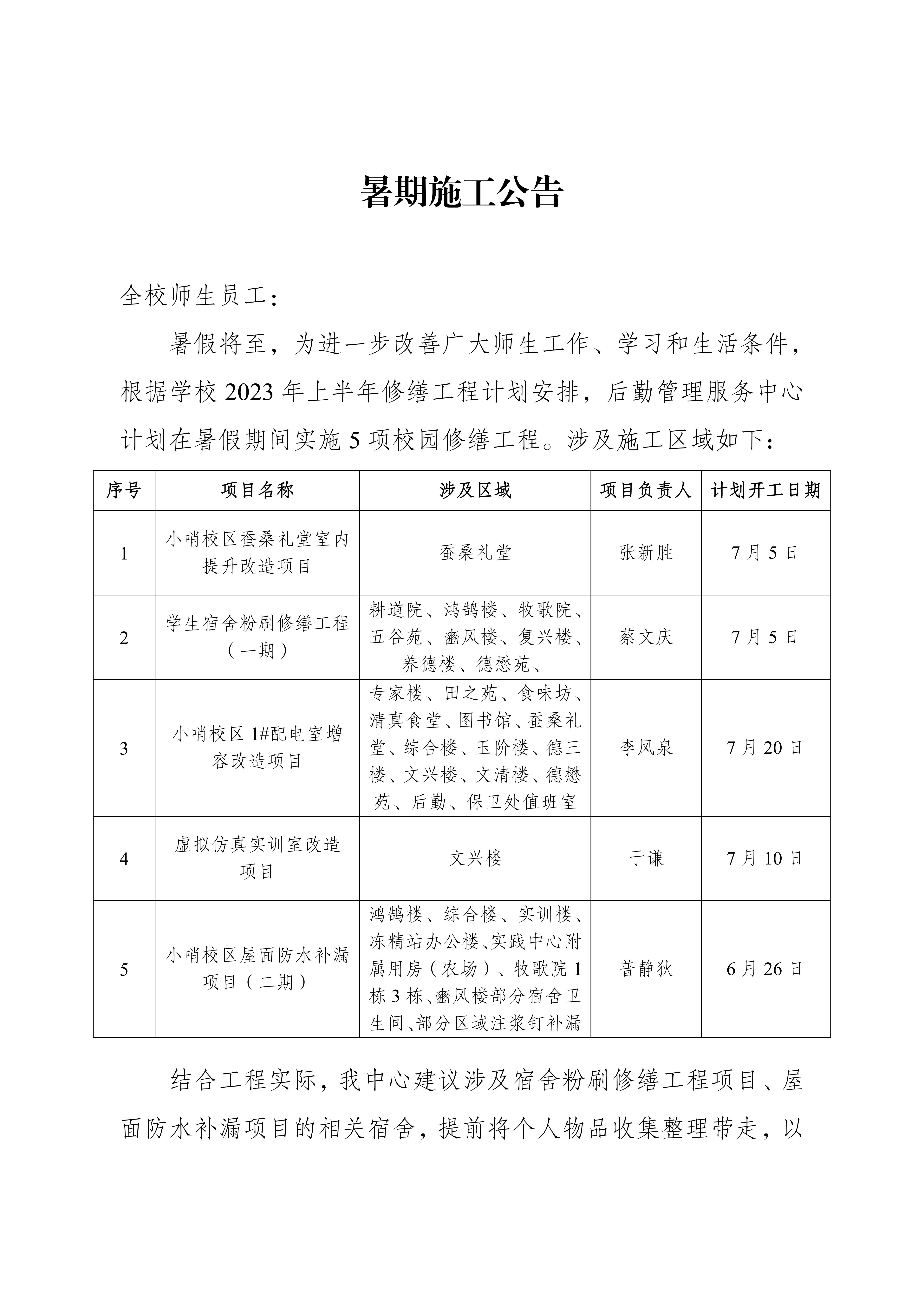 暑期施工公告