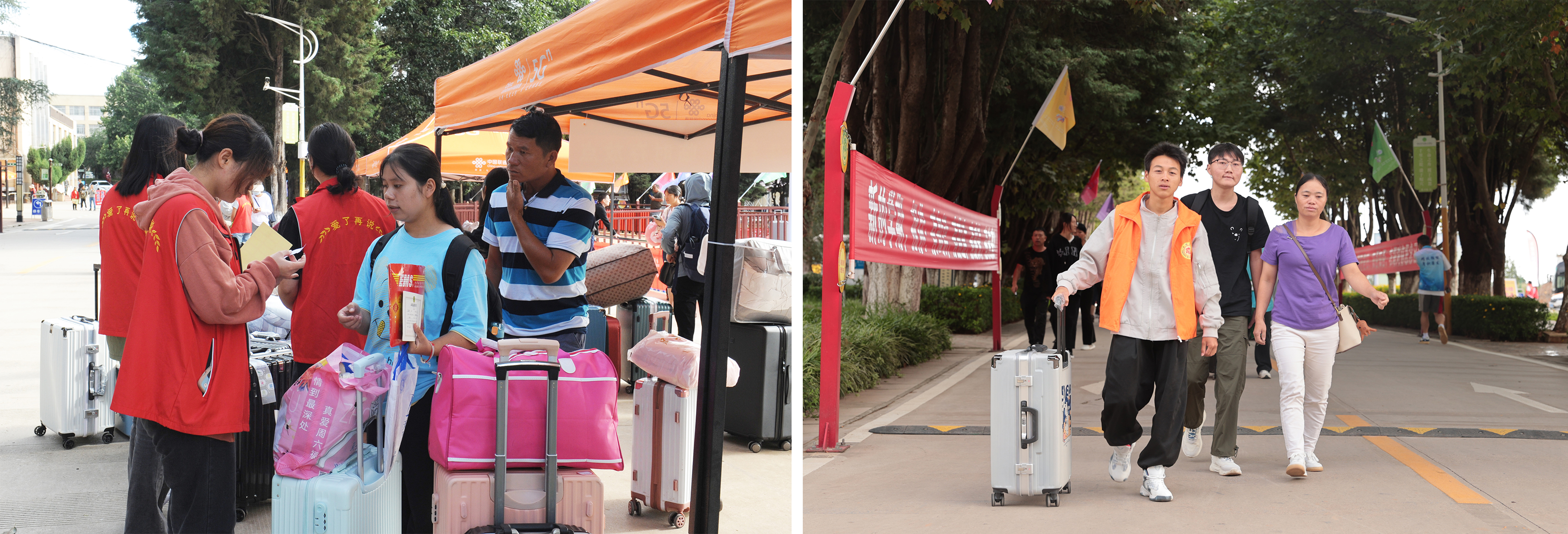 為迎接新生們的到來,志愿者們熱情周到,準備充分,一切有條不紊。校園里隨處可見的志愿服務人員,滿心歡喜地接待大家,臉上洋溢著燦爛的笑容。爭先恐后為新生提行李、引路,獲得了新生及家長們的好評。