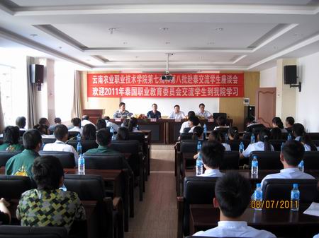 彭志遠院長致辭,首先他對來自泰國的教師們、學生們表示熱烈的歡迎,對第七批交流學生的學成歸來表示肯定和祝賀!對第八批赴泰交流學生通過層層選拔脫穎而出表示熱烈的祝賀!并語重心長地一要求他們向第七批的同學學習,出國后要尊重泰國的民俗文化,要好好學習!