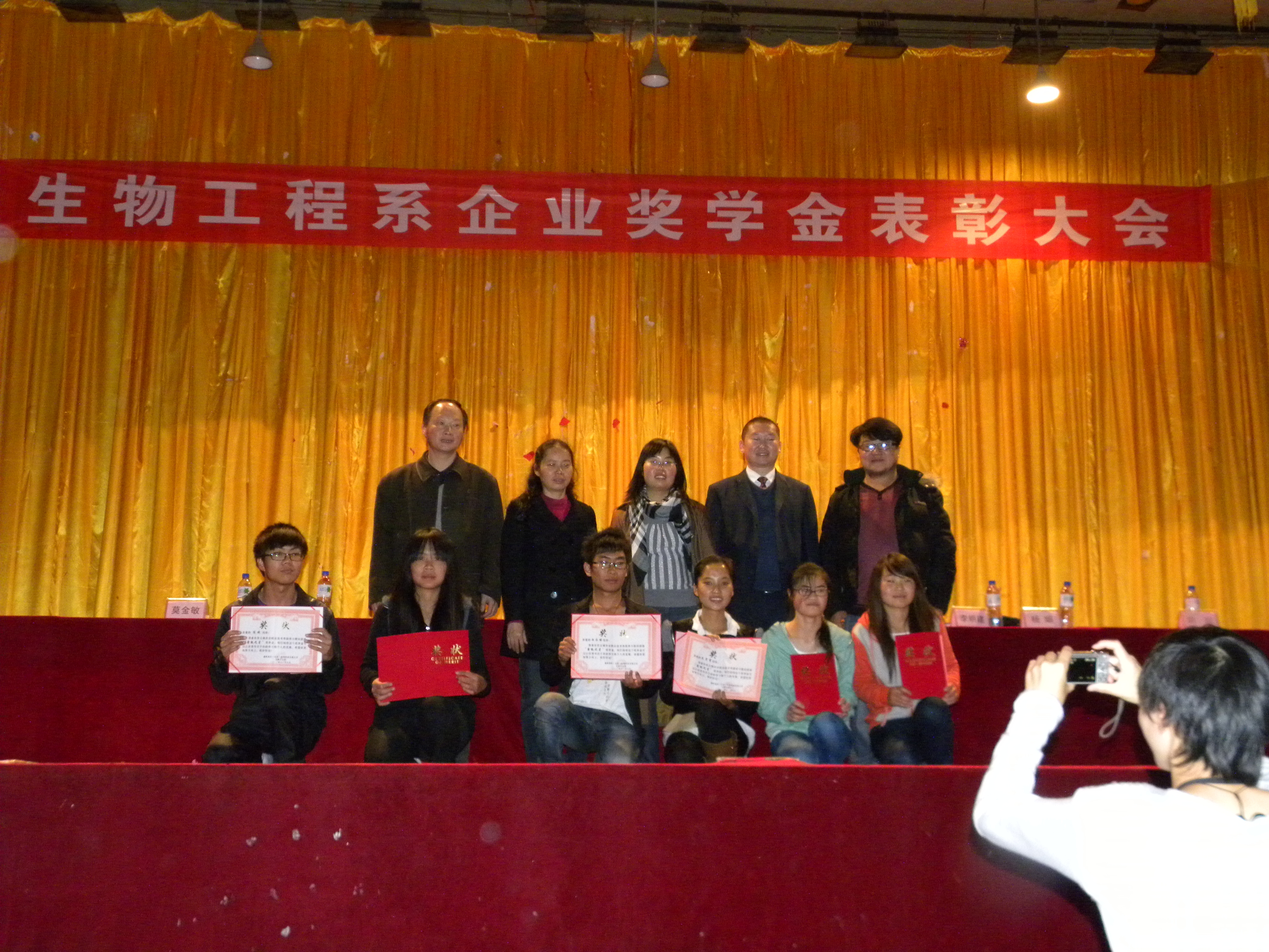 生物工程系主任王孟宇教授首先講話,他說,這次兩家企業(yè)獎(jiǎng)學(xué)金的頒發(fā)是生物工程系調(diào)整組建以來的一件大事,是我系長期以來改革建設(shè)的又一成果。對(duì)兩家企業(yè)的各位來賓表示熱烈的歡迎,對(duì)獲得本次“鑫凱之星”和“鼎業(yè)之星”獎(jiǎng)學(xué)金的同學(xué)們表示熱烈的祝賀!學(xué)校是一個(gè)知識(shí)、科技、人才集中的場(chǎng)所,企業(yè)是把知識(shí)、科技通過市場(chǎng)轉(zhuǎn)化為效益的工廠。目前,我系正在深化教學(xué)改革,力求培養(yǎng)更多適應(yīng)社會(huì)需求的優(yōu)秀畢業(yè)生,為企業(yè)輸送更多的優(yōu)秀人才。我們希望通過與企業(yè)進(jìn)行科研、辦學(xué)等方面更廣泛、更深入的合作和交流,促進(jìn)雙方的共同進(jìn)步和發(fā)展;兩家企業(yè)文化也將積極影響生物工程系改革建設(shè)與發(fā)展的各個(gè)環(huán)節(jié)。今天頒發(fā)的企業(yè)獎(jiǎng)學(xué)金將變成一種無形的力量促進(jìn)學(xué)生茁壯成長,成為學(xué)生不斷奮進(jìn)的動(dòng)力和源泉