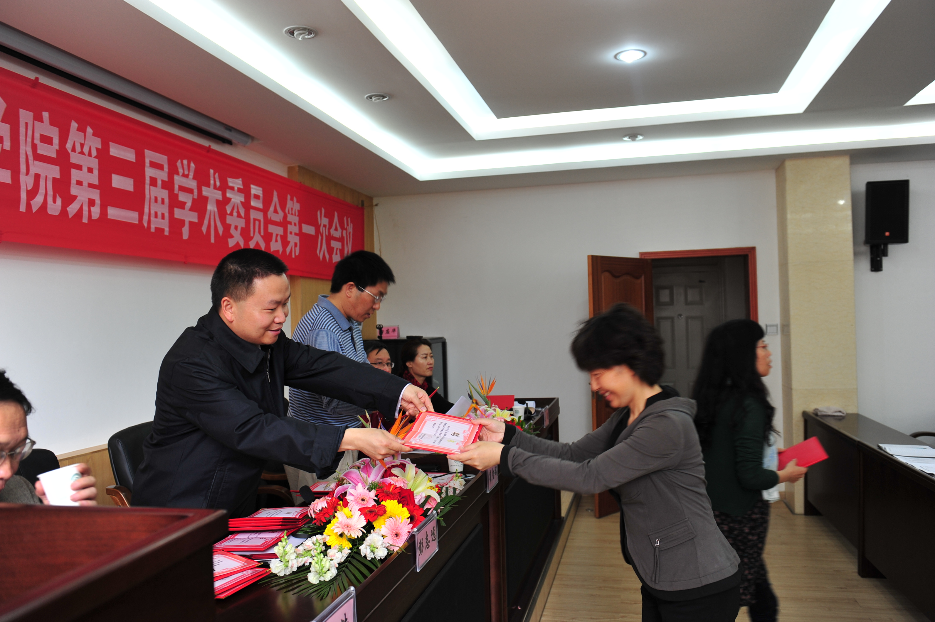 隨后,學(xué)術(shù)委員會(huì)主任委員崔金賦書記、彭志遠(yuǎn)院長(zhǎng)為第三屆學(xué)術(shù)委員會(huì)委員頒發(fā)聘書。