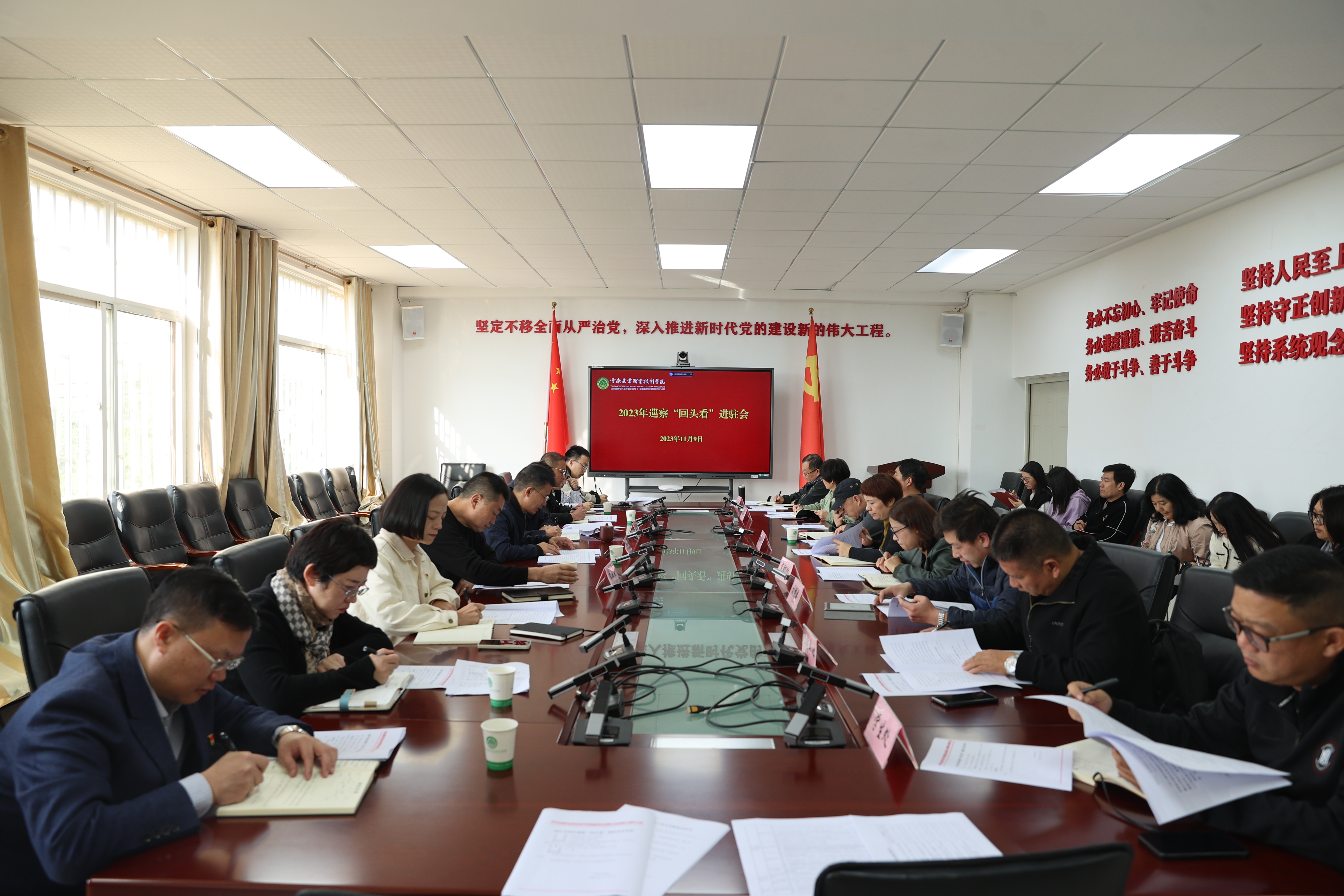 通知中心根據(jù)學院黨委和巡察工作領(lǐng)導小組統(tǒng)一安排部署,11月9日,學院在小哨校區(qū)四樓會議室召開2023年校內(nèi)巡察“回頭看”進駐動員會暨業(yè)務(wù)培訓會。巡察工作領(lǐng)導小組領(lǐng)導,巡察辦相關(guān)人員,專項工作組全體成員;被巡察黨政部門主要負責人參加會議。