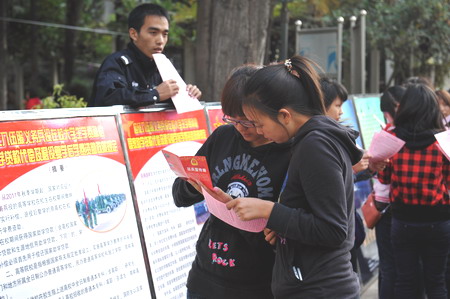 通知中心2011年11月3日,我院2011年冬季征兵工作全面展開。出席啟動儀式的有學(xué)院副院長俞浩、黨(院)辦副主任李一源、宣傳部副部長蔡永生以及保衛(wèi)處有關(guān)老師,龍翔街道辦事處、茭菱社區(qū)有關(guān)領(lǐng)導(dǎo)和工作人員。啟動儀式上由茭菱社區(qū)工作人員向我院學(xué)生講解、派發(fā)宣傳資料。