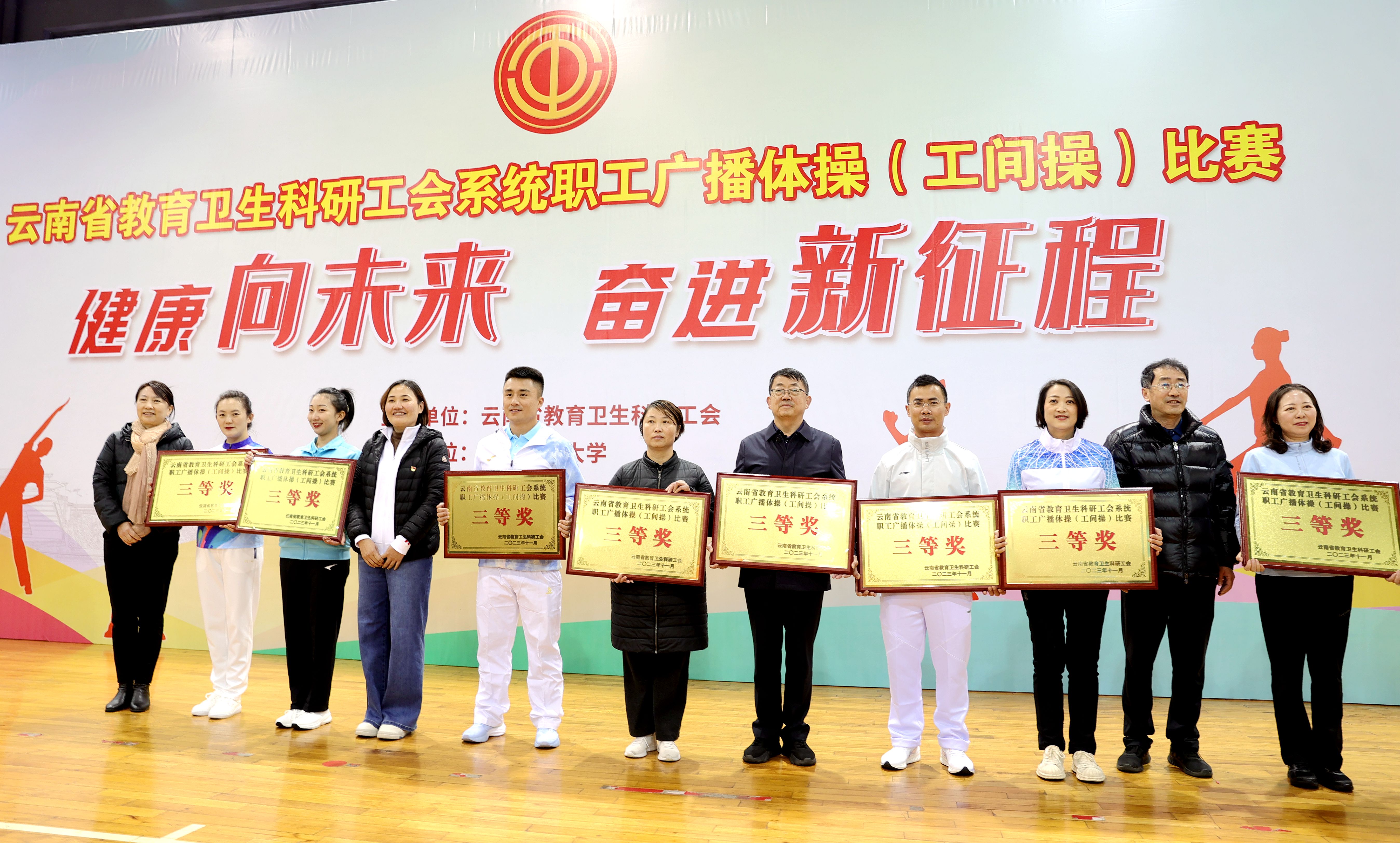 通知中心11月18日,我院黨委副書記、工會主席伍學龍帶隊參加了云南省教育衛生科研工會系統廣播體操(工間操)比賽。經過激烈的角逐,我院代表隊在34支參賽隊伍中脫穎而出,榮獲了三等獎。