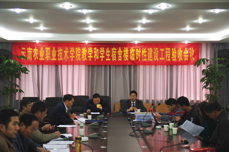 彭志遠(yuǎn)院長(zhǎng)最后宣布:學(xué)院教學(xué)樓和學(xué)生宿舍樓兩項(xiàng)工程驗(yàn)收為——合格。(蔡永生 供稿)