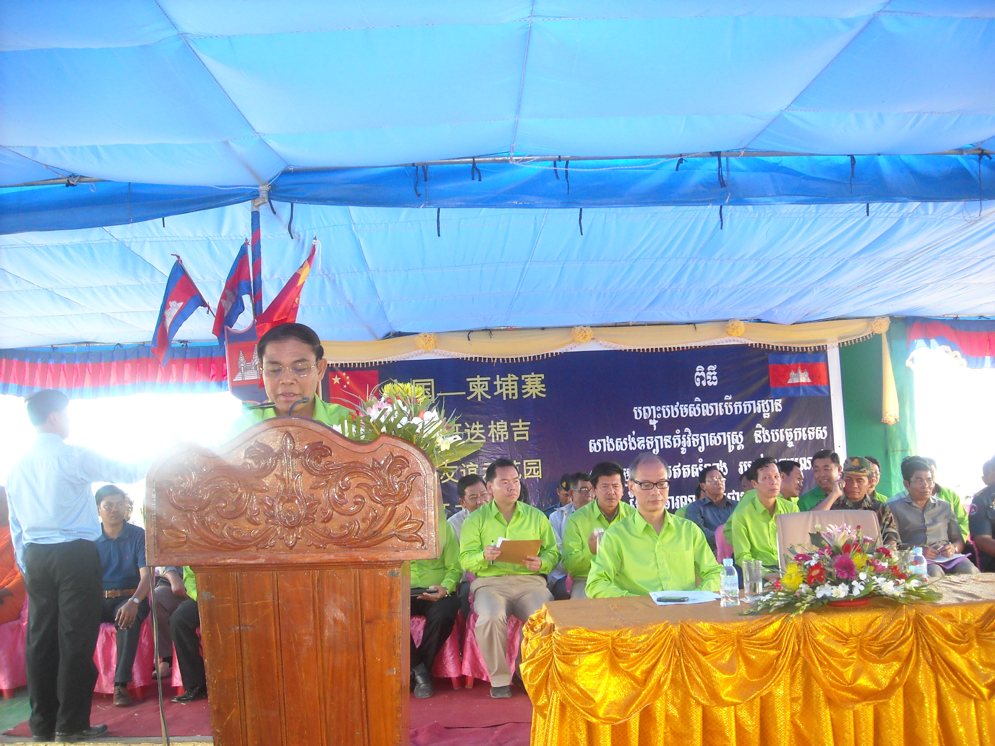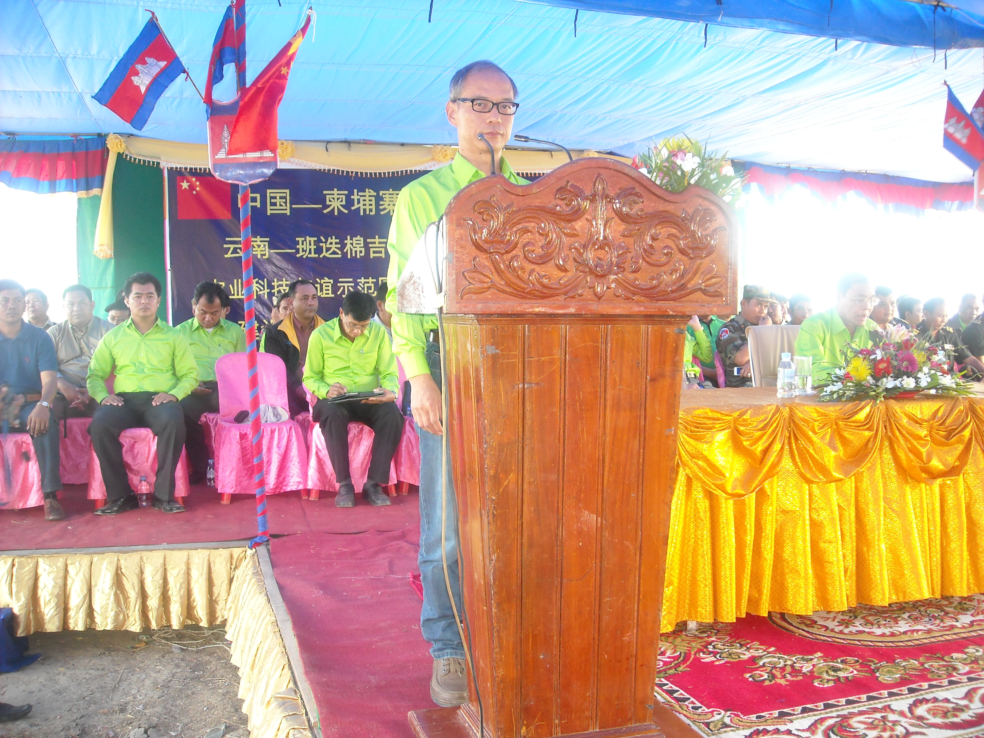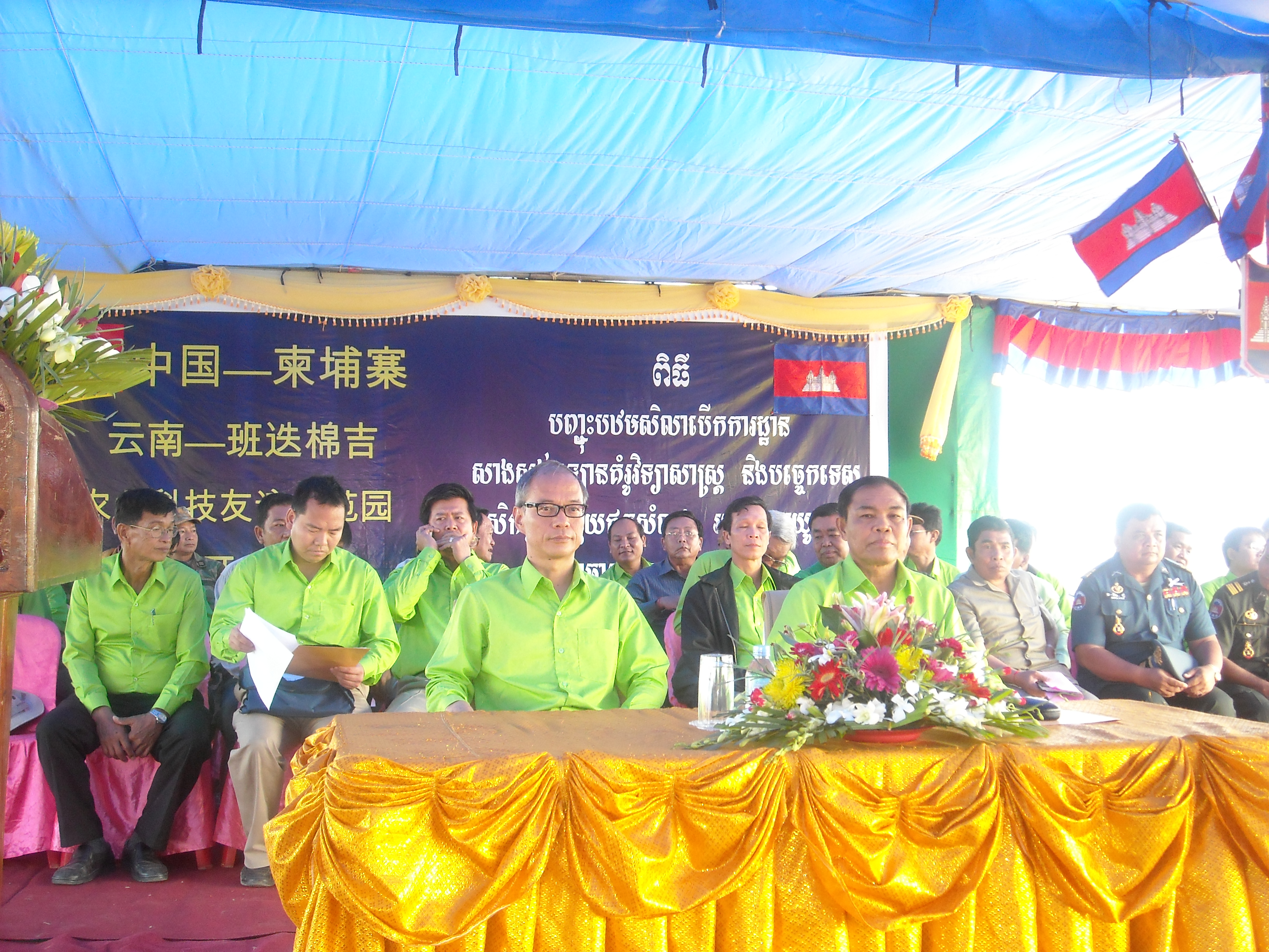 在開工儀式上,馬萊縣縣長介紹了當地農業的基本情況;中方代表楊東云處長作了發言,簡要介紹了示范園項目建設的宗旨、規模及建成后將發揮的作用;最后班迭棉吉省翁恩省長閣下作了熱情洋溢的發言,省長閣下向與會者詳細介紹了云南省與班迭棉吉省建立友好關系的過程,對中華人民共和國云南省人民政府給以班省的無償援助,對項目負責單位云南省農業廳及項目實施單位云南農業職業技術學院表示衷心的感謝,并預祝“中國云南—柬埔寨班迭棉吉農業科技友誼示范園”建設項目順利按期完工。