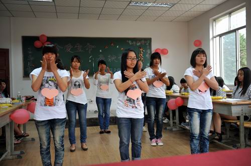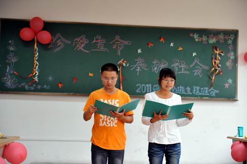 在班主任曾劼老師的主持帶領下,一段女同學的《愛的奉獻》詩歌朗誦拉開了主題班會序幕。同學們通過詩歌朗誦、舞蹈、和小品表演的形式真摯的表達對父母、老師、同學、朋友的感恩之情。特別是通過小品《回頭是岸》重新演繹多年前發生在云南大學馬加爵殺害同學慘案的細節,揭示出人與人之間相互尊重、相互理解、友愛團結是構建和諧校園、和諧社會的重要元素。