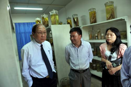彭院長陪同泰國客人參觀生物工程系魚標本室