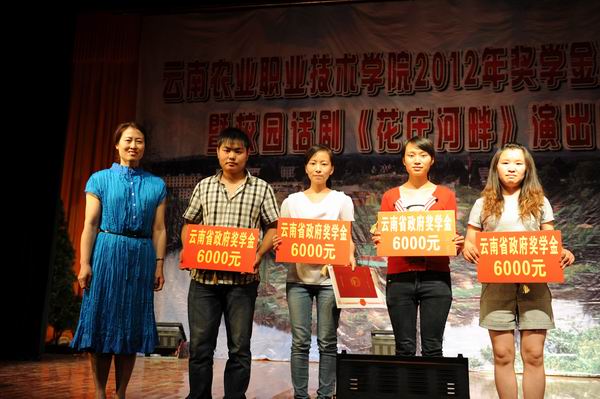 俞浩副院長為榮獲國家獎學(xué)金的同學(xué)頒獎,每人八千元;趙莉副院長為榮獲云南省政府獎學(xué)金的同學(xué)頒獎,每人六千元;黨院辦主任金吉斌、學(xué)生工作處處長周誠為榮獲國家勵志獎學(xué)金的同學(xué)頒獎,每人五千元;生物工程系黨總支書記許邦麗、園藝與園林工程系黨總支書記董文紅、畜牧獸醫(yī)系黨總支書記錢林東為榮獲云南省政府勵志獎學(xué)金的同學(xué)頒獎,每人四千元;學(xué)生工作處副處長施碧強(qiáng)、生物工程系黨總支副書記李一源、管理與信息工程系黨總支副書記徐開宏為榮獲學(xué)院獎學(xué)金的同學(xué)頒獎,每人一千元。