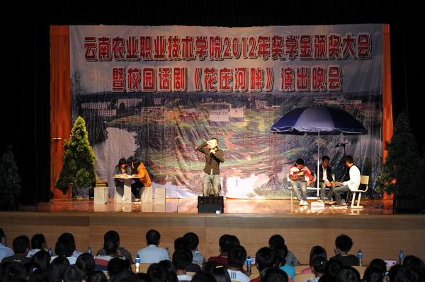 頒獎大會結(jié)束后,師生一同欣賞觀看了我院話劇《花莊河畔》。話劇創(chuàng)作于2010年8月并在同年9月底的學(xué)院106年校慶活動中公演,獲得全院師生的好評。今年由生物工程系團(tuán)總支書記張帝佐龍帶領(lǐng)系上學(xué)生重新排練演出。演出獲得師生的陣陣掌聲,話劇《花莊河畔》再次獲得成功。(黨委宣傳部供稿)