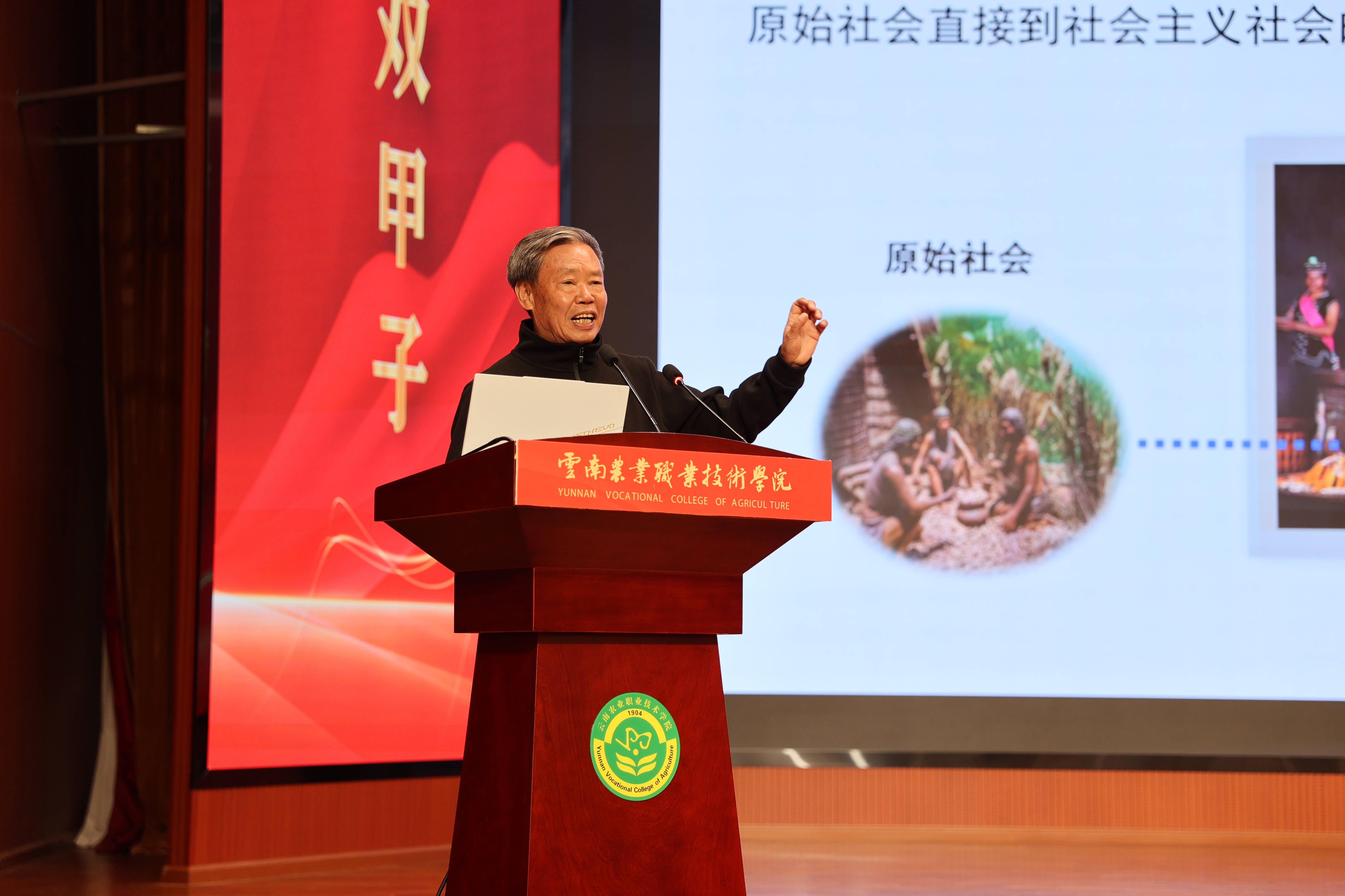 學(xué)校黨委副書記、校長陳太安作學(xué)校百廿事業(yè)發(fā)展報(bào)告。報(bào)告全面展現(xiàn)了學(xué)校深化農(nóng)業(yè)相關(guān)學(xué)科建設(shè),緊跟農(nóng)業(yè)科技前沿,積極探索新農(nóng)科發(fā)展路徑,培養(yǎng)知農(nóng)愛農(nóng)新型人才昂揚(yáng)奮斗的生動實(shí)踐。報(bào)告指出,展望未來,學(xué)校將始終胸懷“國之大者”,以立德樹人為根本,以強(qiáng)農(nóng)興農(nóng)為己任,錨定高水平農(nóng)業(yè)職業(yè)技術(shù)大學(xué)的建設(shè)目標(biāo),建設(shè)“我國西南邊疆民族地區(qū)鄉(xiāng)村產(chǎn)業(yè)振興人才培養(yǎng)高地、高原特色農(nóng)業(yè)應(yīng)用技術(shù)的研發(fā)推廣基地、面向南亞東南亞高質(zhì)量農(nóng)業(yè)職業(yè)教育示范輻射中心”。