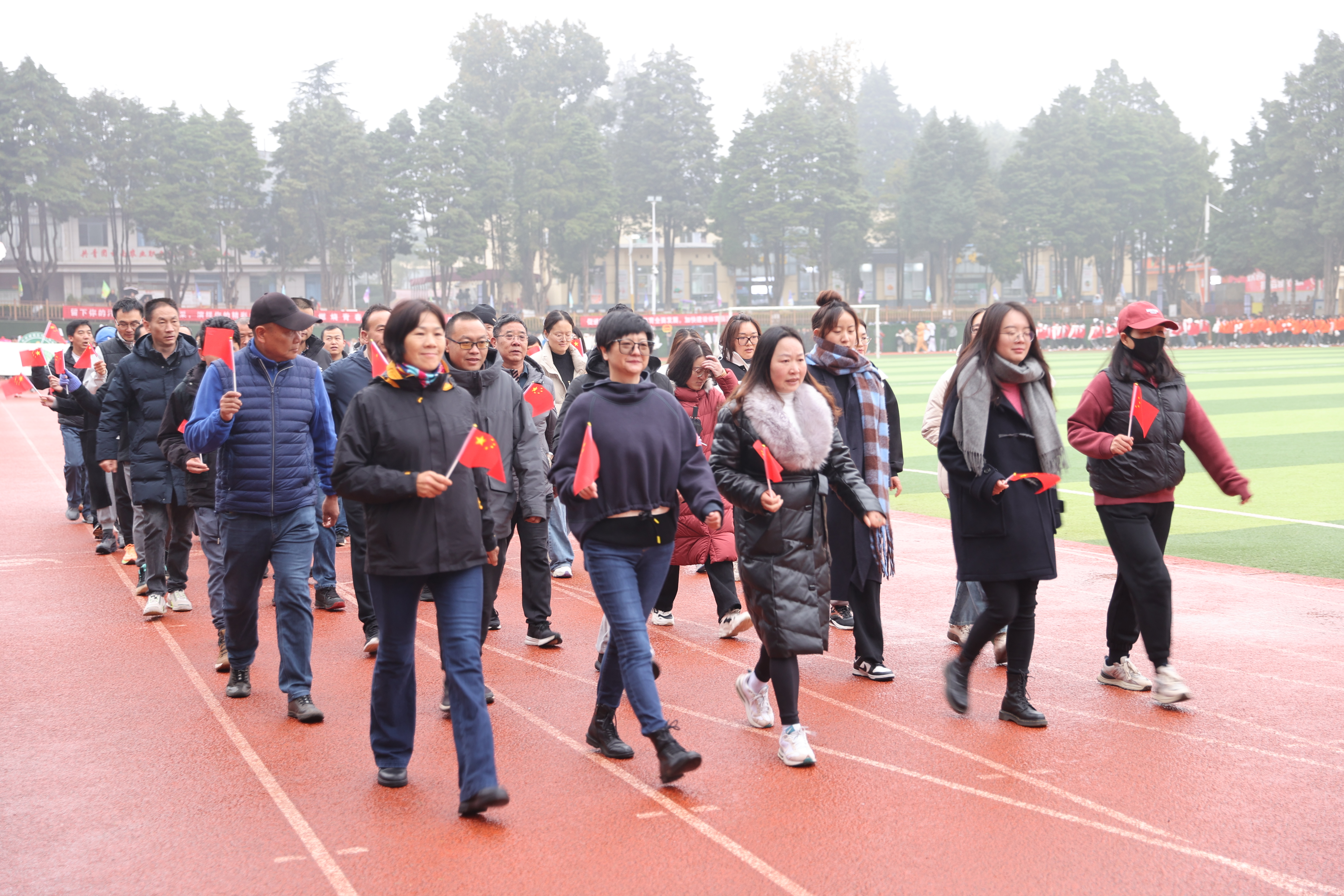 學校黨委書記文俊宣布第二十屆運動會開幕,師生們隨即投入到這場運動盛宴中。