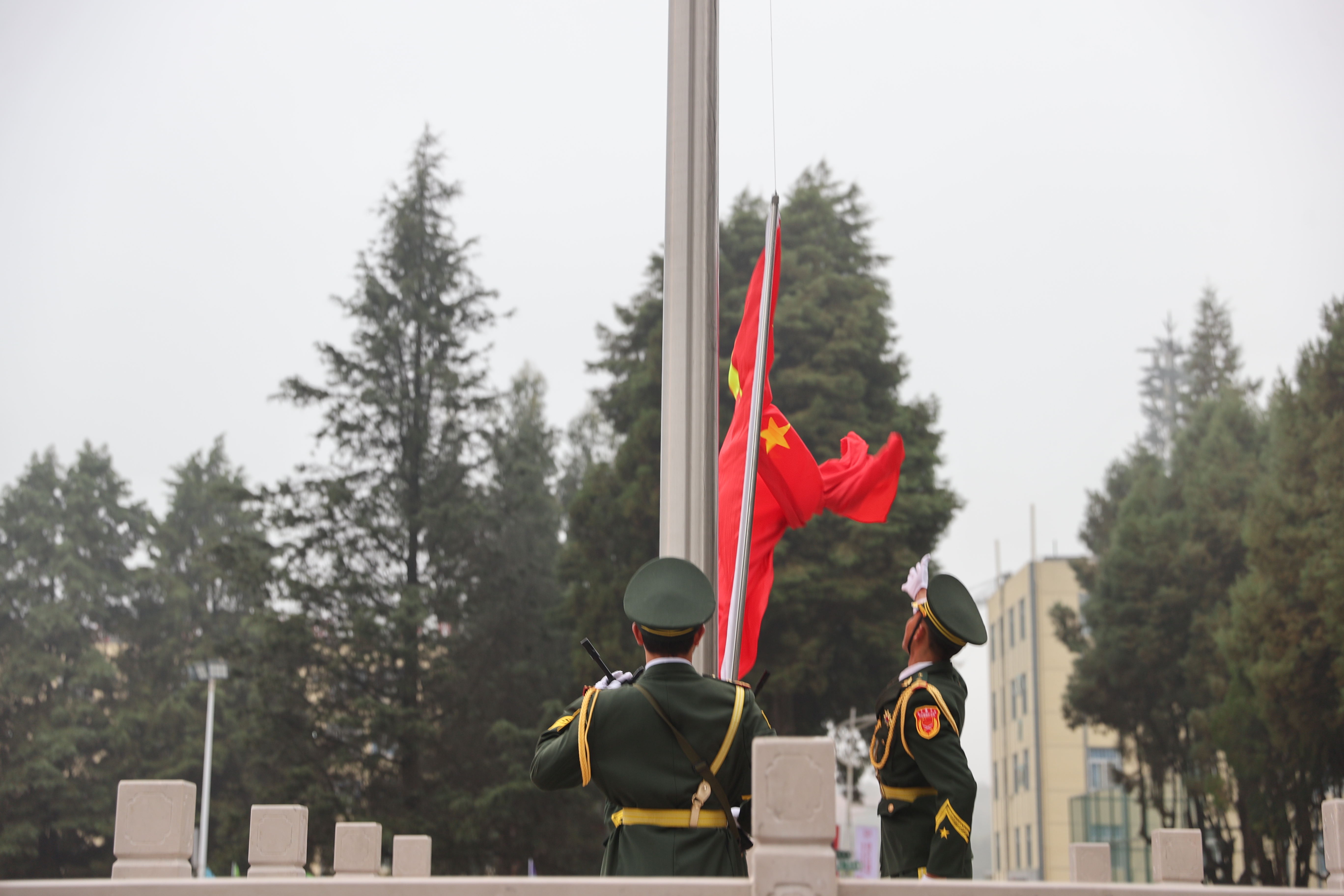 開幕式上舉行了升國旗儀式,在場師生行注目禮,愛國之情與集體榮譽感在此刻凝聚升華。