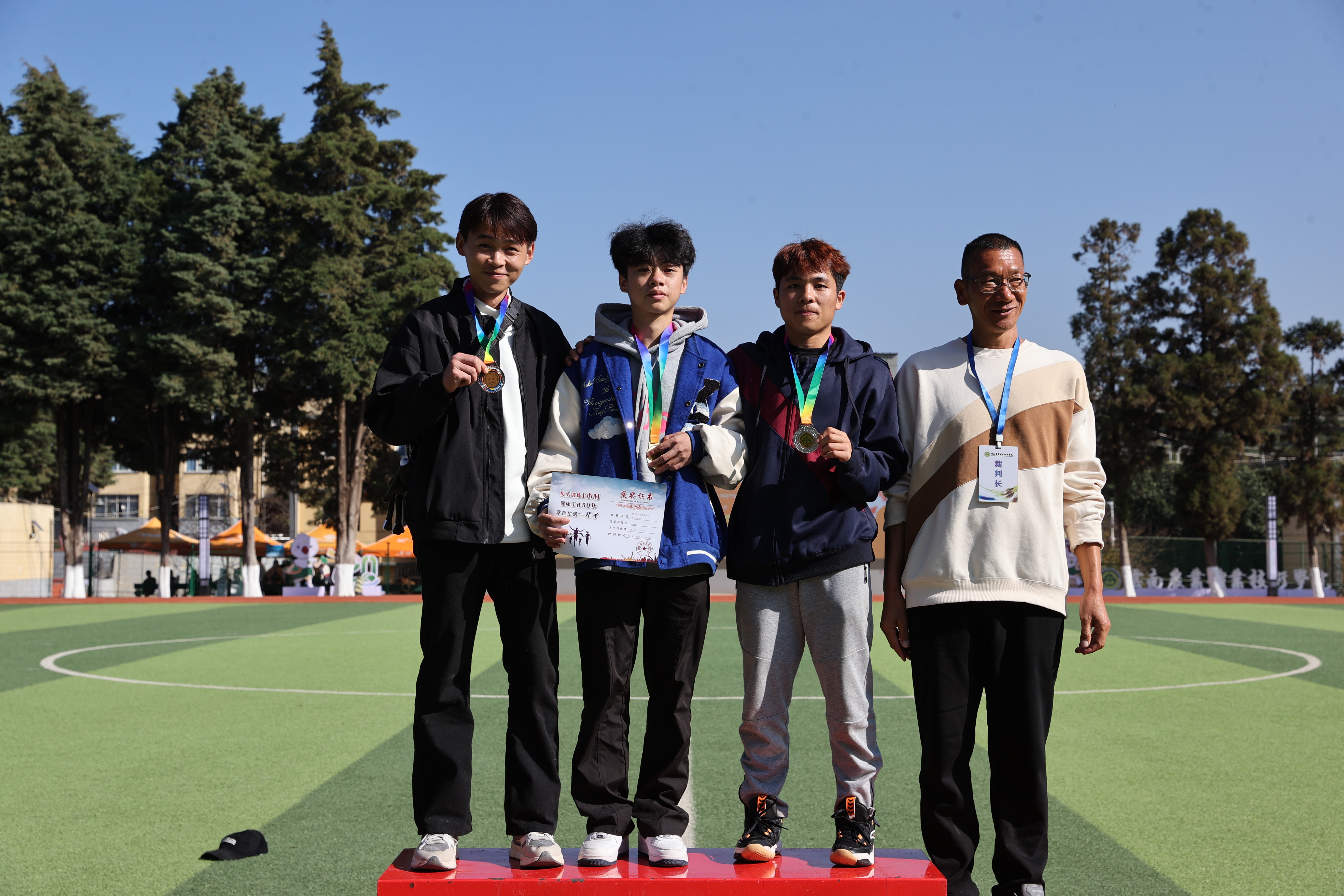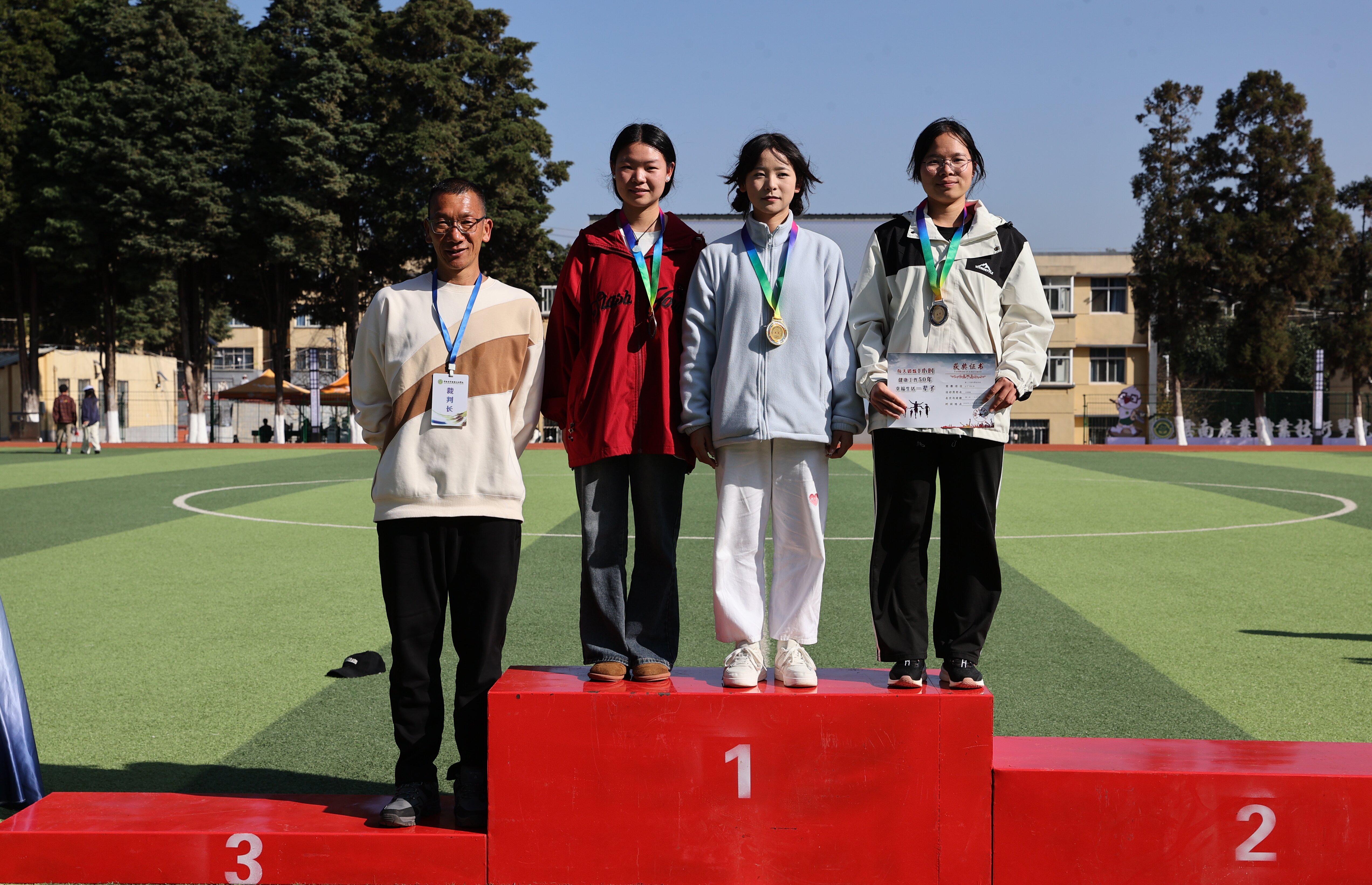 閉幕式上,基礎部(體育工作部、公共藝術教育部)負責人公布男子、女子團體總分前三名以及團體總分前三名代表隊名單,優秀組織獎、道德風尚獎獲獎單位名單。每一個名字的公布,都伴隨著熱烈的掌聲與歡呼聲,那是對運動員們辛苦付出的認可與贊揚。老師們為獲獎團體頒獎,獲獎代表們臉上洋溢著自豪與喜悅。