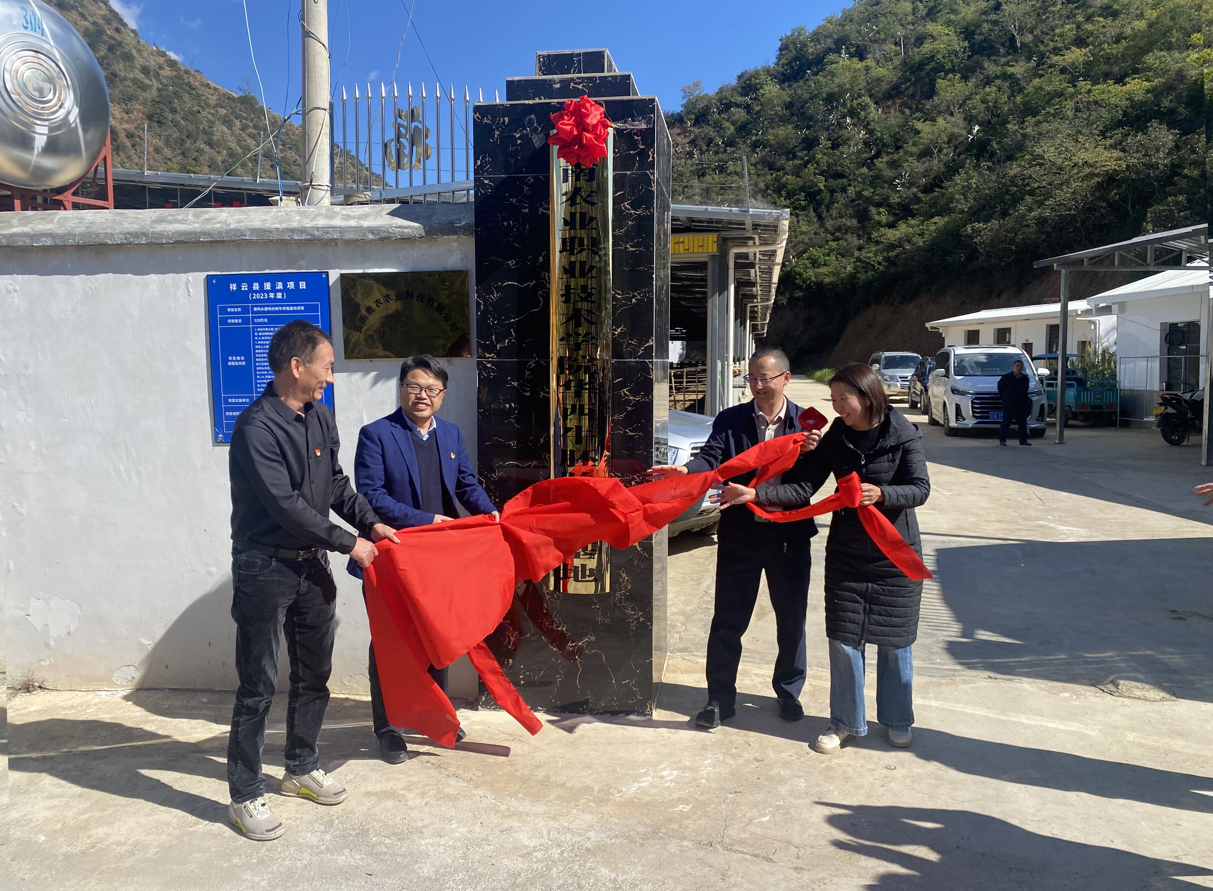 張建華副書記表示,與學(xué)校合作將進一步發(fā)揮黨建引領(lǐng)作用,做實產(chǎn)業(yè),推動鄉(xiāng)村振興,促進農(nóng)業(yè)產(chǎn)業(yè)發(fā)展。“云南農(nóng)業(yè)職業(yè)技術(shù)學(xué)院華西牛胚胎移植基地”的掛牌,是充分發(fā)揮專家團隊技術(shù)優(yōu)勢,做好品種改良、技術(shù)指導(dǎo)、市場拓展,推動畜牧業(yè)發(fā)展,助力農(nóng)民增收的務(wù)實舉措。