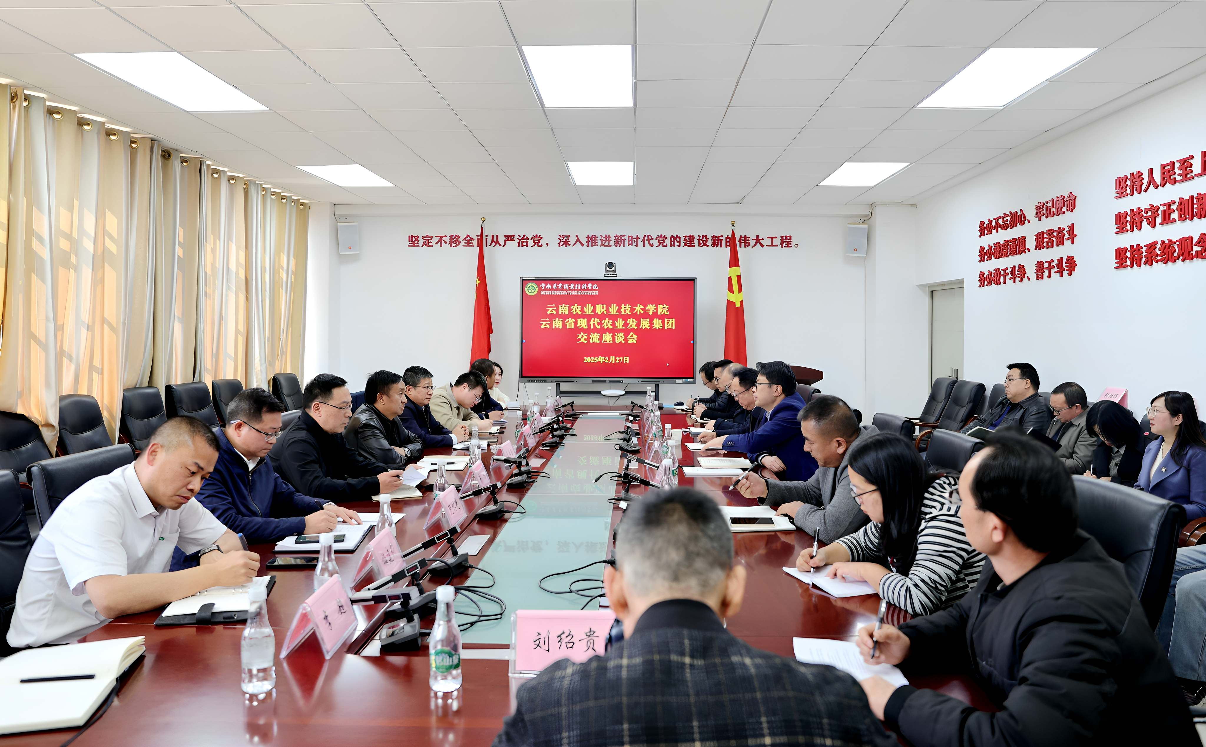 文俊書記對省農發(農墾)集團的到訪表示歡迎,他表示:我校與省農發集團的合作符合中央1號文件精神,有很好的合作基礎,合作前景潛力巨大。并就抓實高原特色農業產教融合共同體的具體舉措,明確了任務。學院將積極發揮人才隊伍和科研基礎優勢,主動融入和參與構建云南高原特色現代農業產業體系,在重點合作項目規劃等方面,希望加強與省農發(農墾)集團的對接,共同組建工作專班,推進資源共享、平臺共建、各盡其功,達到共同培養人才的目的。(辦公室(黨委巡察辦)/文:劉貴賢、圖:普仲凱、唐麗群/一審:李石友、二審:唐麗群、三審:楊筱瑩/一校:劉貴賢、二校:唐麗群、三校:楊筱瑩/責任編輯:張敏)