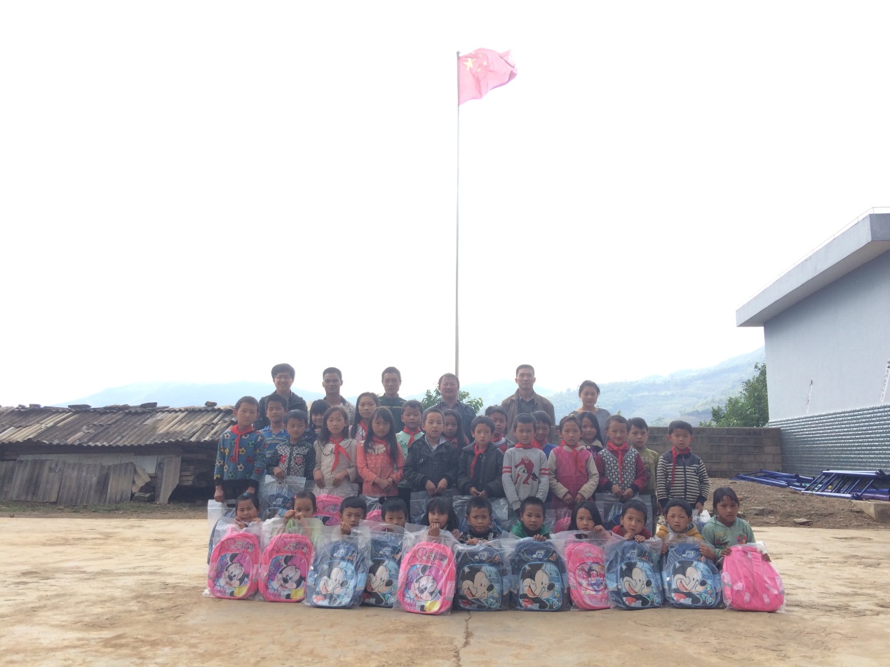 2016年4月26日,在學(xué)校及校團委的大力支持與幫助下,黃富金隊長帶領(lǐng)我校駐村隊員盛鵬老師、譚淑文老師、趙筱老師、陳百麗老師與龔家寨小學(xué)全體老師一起組織了云南農(nóng)業(yè)職業(yè)技術(shù)學(xué)院向龔家寨小學(xué)的書包與文具的捐助活動。這些書包由校團委組織全校學(xué)生募集而來資金與物資全力支持。