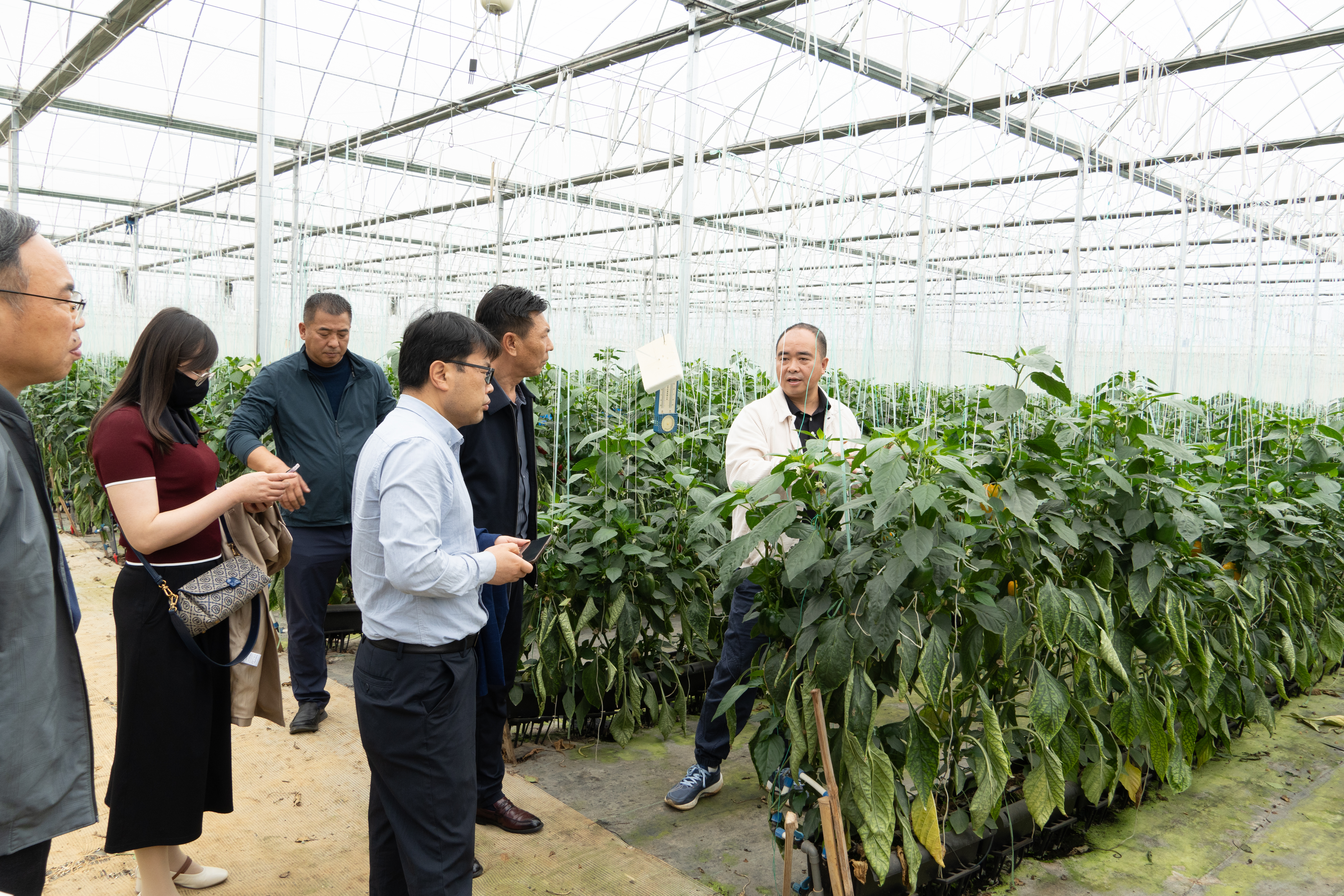 在沛博果蔬種植有限公司,陳太安一行深入現代化溫室大棚,實地觀摩彩椒無土栽培技術,并與我校畢業生及在崗實習學生親切交流。企業負責人詳細介紹了彩椒品種選育、智能化栽培管理、市場銷售及企業發展規劃,并高度評價目前在崗的我校7名實習生和1名畢業生的工作表現,期待進一步深化校企合作。陳太安校長表示,學校將以企業需求為導向優化人才培養方案,精準對接地方產業發展。東回鎮黨委書記刀海燕表示,政府將持續發揮橋梁紐帶作用,完善校企對接平臺,落實就業扶持政策,為企業引才和畢業生就業提供全方位保障。