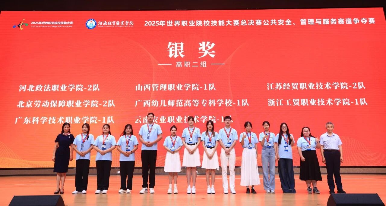 技炫青春,能創未來。8月25日至29日,2025年世界職業院校技能大賽總決賽公共安全、管理與服務賽道爭奪賽在河南經貿職業學院成功舉辦。由我校經濟管理學院曾劼、王鶴霖老師指導,24級行政管理專業胡宗劍、代園、魯清妍、劉齊歡四位同學組成的參賽團隊,憑借精湛的技能操作、扎實的專業知識、出色的團隊協作,勇奪銀獎!