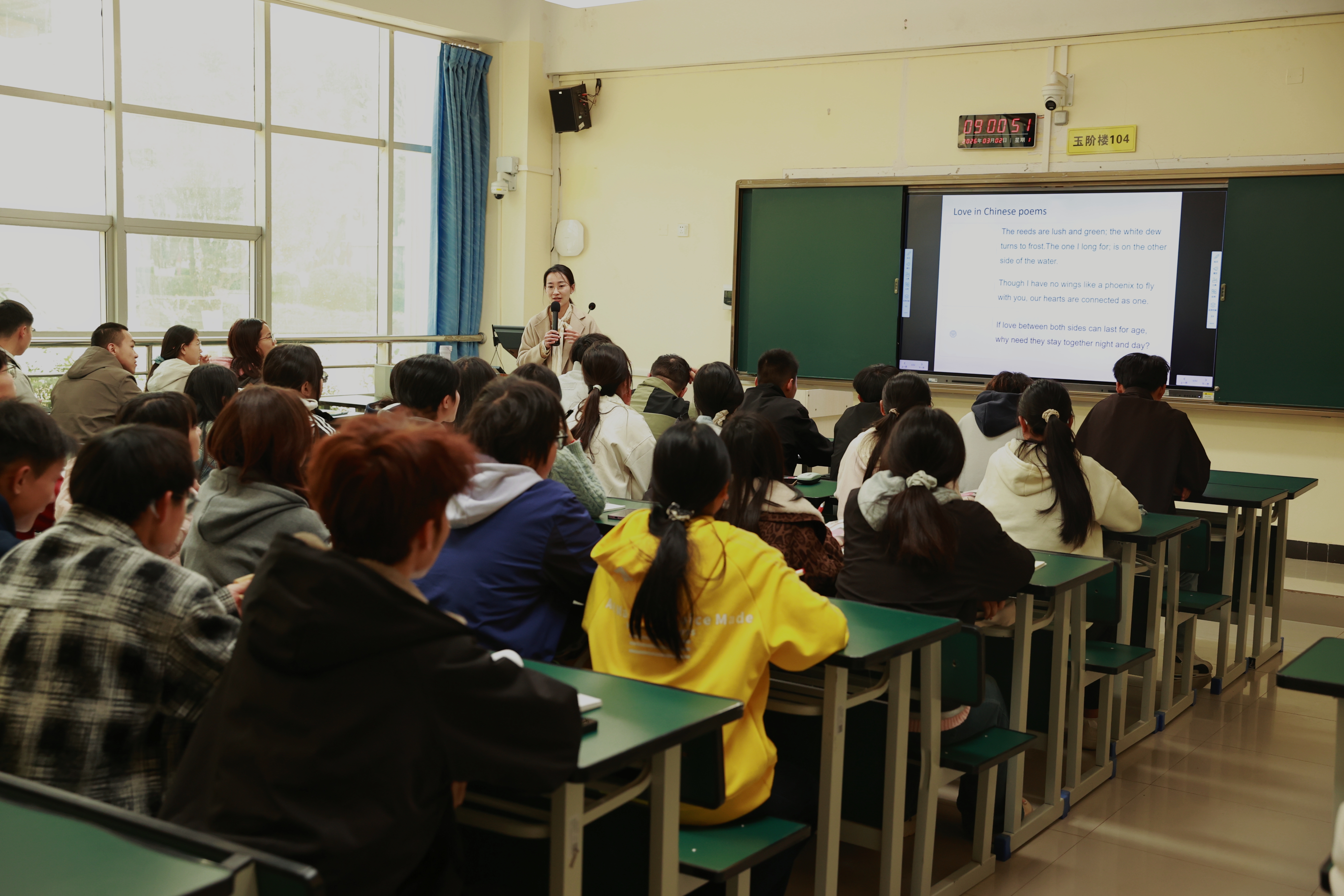 教學樓內,明亮的教室里桌椅整齊,多媒體設備運行正常;課堂上,教師們授課條理清晰、互動自然,同學們坐姿端正、認真聆聽,課堂氛圍活躍有序,展現出優良的教風和學風。