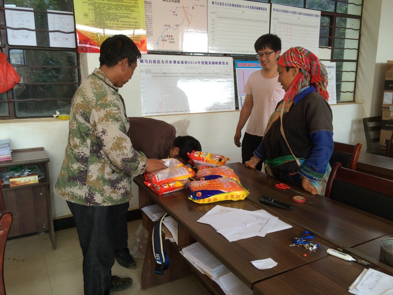 2016年4月13日,在我校玉米綜合試驗站站長趙燕教授積極協調下,相關扶貧物資已順利到達龔家寨村委會,由村領導和駐村工作隊接受了物資,等待村里統一部署后分發到農民手中種植。
