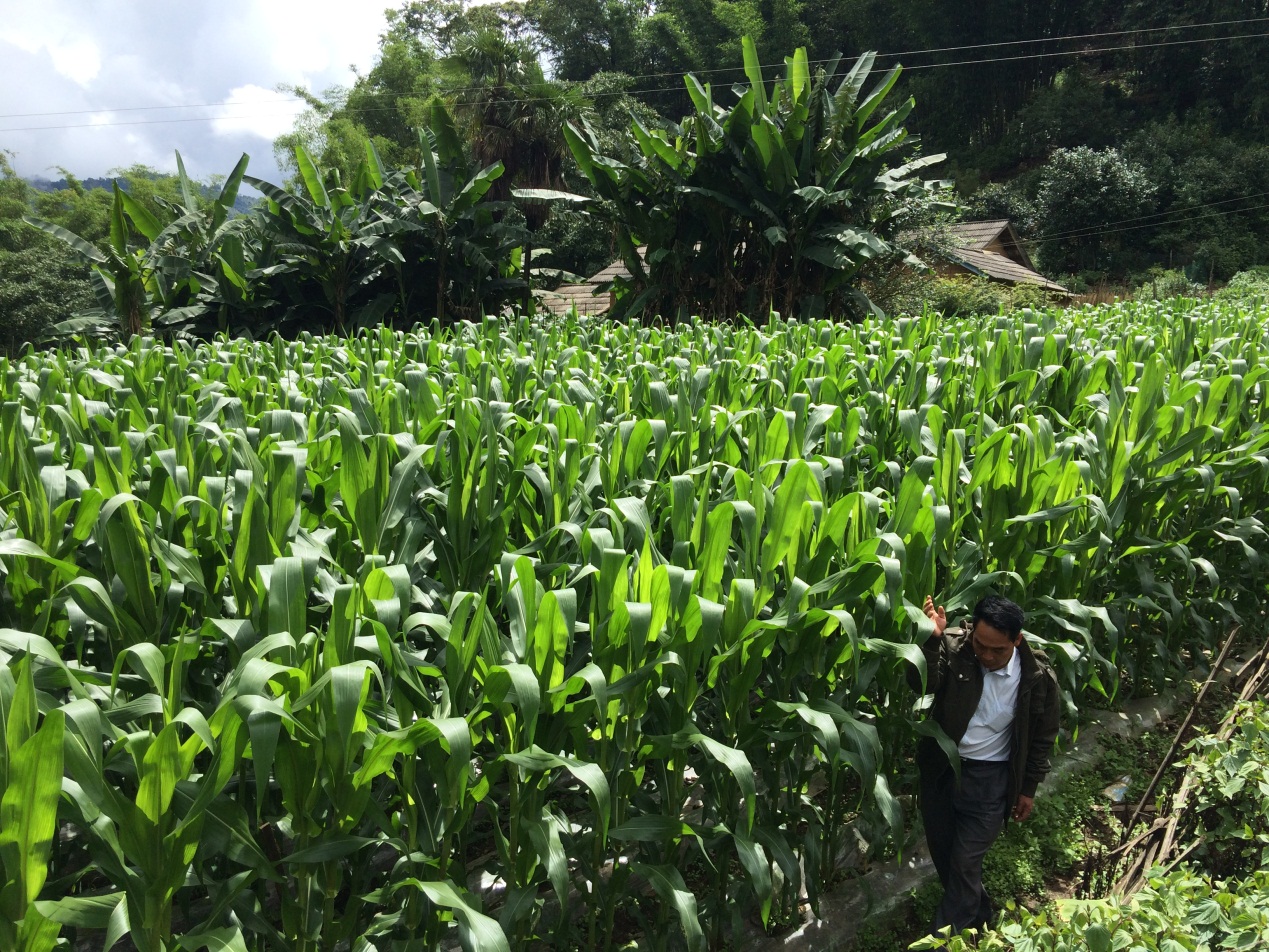 按照技術人員和駐村工作隊的持續關心和指導,經過村民們兩個多月的辛勤勞作, 2016年7月9日,經過駐村工作隊走訪調查,發現由于今年雨水充沛,光照適宜,新品種玉米配合新技術后,各村組玉米均長勢良好,其中新品種禾玉88長勢比紅單10號更勝一籌,二者在植株長勢上,結包結穗上都比以前的品種優秀,很多村民表示,今年豐收的希望很大。