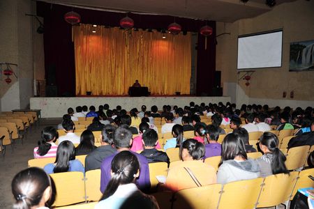 通知中心2010年9月14日下午,在茭菱校區階梯教室內氣氛熱烈,掌聲不斷,這是黨委書記崔金賦同志在為2010年入學的新生作“形勢與政策”的講座現場。