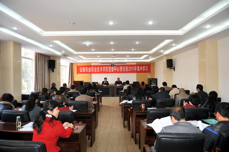 2011年11月11日下午2:30,我院黨委理論學習中心組在茭菱校區報告廳組織院級領導、中層干部、以及在茭菱校區的行政人員認真聆聽了原云南省政府副秘書長原云南農業大學校長我院專家咨詢委員會主任省革命老區建設促進會常務副會長黃仁躍老領導的精彩報告。崔金賦書記主持報告會。