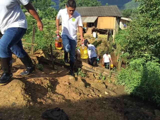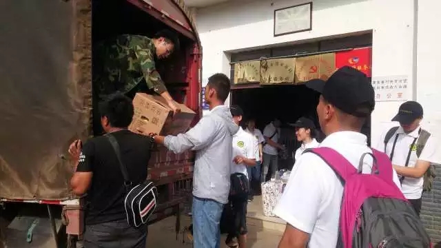 經過三個小時的艱難跋涉,我們于當天下午7點終于抵達本次的目的地,大興鄉龔家寨村,來不及休整,我們便開始卸載本次帶來的扶貧物資。