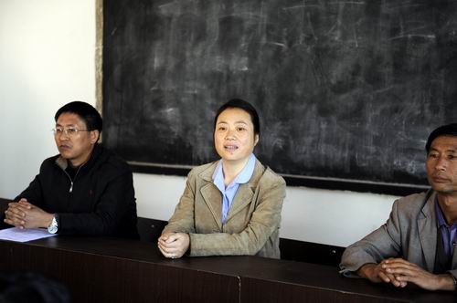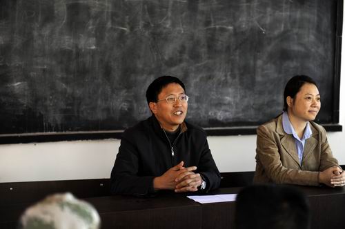 崔書記:自省委今年初確定我院的“四群教育”掛靠聯系點為富民縣時,學院黨委高度重視,多次召開會議研究對富民縣兩個鄉鎮四個村委會的幫扶問題,并通過兩次深入調研,制定了學院“四群教育”幫扶方案。主要是充分利用我院科研培訓的智力優勢,為當地農民進行科技培訓、技術咨詢和指導。截止到目前,學院為富民縣農業局舉辦了一期近100人的農技人員“糧食高產創建培訓班”;學院四位廳級領導掛靠的重點聯系農戶,在收完小春播種大春作物的五月底,及時為每一農戶送去了價值5000余元的高效化肥,為兩家農戶送去了學院培育的6只優良種山羊,切實幫助他們增產增收,脫貧致富。現在有即將開班的14個“農民科技培訓班”。