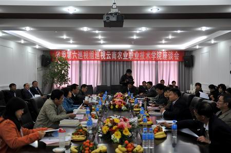 首先,崔金賦書記代表學(xué)院向巡視組領(lǐng)導(dǎo)匯報(bào)了我院辦學(xué)的基本情況,從1904年創(chuàng)辦“蠶桑學(xué)堂”走過的108年悠久而光榮的辦學(xué)歷史,到現(xiàn)階段不斷發(fā)展壯大的辦學(xué)水平和辦學(xué)規(guī)模。崔書記著重匯報(bào)了我院辦學(xué)所取得的主要成績,以及辦學(xué)過程中面臨的問題和困難。崔書記著重匯報(bào)了我院辦學(xué)取得的五大成績:一是辦學(xué)規(guī)模不斷擴(kuò)大,在校生規(guī)模由2008年的4139人增加到2011年的5554人,增長34%。開設(shè)專業(yè)由2008年的31個(gè)增加到2011年的38個(gè),增長23%。二是辦學(xué)水平不斷提升,2010年年底學(xué)院已經(jīng)被省財(cái)政廳、省教育廳立項(xiàng)為云南省省級示范性高等職業(yè)院校建設(shè)單位,目前省內(nèi)共有6所學(xué)校獲準(zhǔn)立項(xiàng)。三是辦學(xué)特色逐步彰顯,第一,高度重視實(shí)踐課程和學(xué)生實(shí)習(xí)實(shí)訓(xùn),為學(xué)生提供更多的動(dòng)手實(shí)踐機(jī)會(huì),凸顯了農(nóng)業(yè)職業(yè)教育的農(nóng)業(yè)特色和職業(yè)特色,這是我們最為顯著的特色。第二,充分發(fā)揮小哨作為云南省畜牧業(yè)科技中心的區(qū)位優(yōu)勢,聘請周邊單位實(shí)踐型專家學(xué)者直接給學(xué)生授課,經(jīng)常安排學(xué)生到周邊單位參觀實(shí)習(xí),構(gòu)建了良好的校企校政合作運(yùn)行機(jī)制,實(shí)現(xiàn)理論教學(xué)和實(shí)踐教學(xué)的緊密結(jié)合,形成了獨(dú)樹一幟的小哨地域特色。第三,充分發(fā)揮行業(yè)主管的優(yōu)勢,緊緊依托行業(yè)辦學(xué),主動(dòng)融入行業(yè)發(fā)展,得到了農(nóng)業(yè)廳的高度重視和大力支持,彰顯了職業(yè)教育的行業(yè)特色。四是國際合作成效顯著,學(xué)院與日本國長野縣南安曇農(nóng)業(yè)高等學(xué)校和泰國七所職業(yè)院校先后進(jìn)行了長期的、多批次、廣泛的交流合作,與泰國職業(yè)院?;ヅ闪魧W(xué)師生已有8批次300余人次。學(xué)院多次接待泰國職教代表團(tuán)來校訪問考察,有100多位教師前往泰國考察職業(yè)教育。在農(nóng)業(yè)廳的支持下,目前正在開展“中國云南—柬埔寨班迭棉吉省農(nóng)業(yè)科技友誼示范園”項(xiàng)目的實(shí)施工作。今年我院已被省教育廳批準(zhǔn)正式在東南亞國家招收留學(xué)生。五是體制機(jī)制日趨完善,為實(shí)現(xiàn)資源優(yōu)化組合,學(xué)院黨委深入推進(jìn)內(nèi)部管理體制機(jī)制改革,充分調(diào)動(dòng)廣大教職工的積極性和主動(dòng)性,增強(qiáng)了學(xué)院發(fā)展的活力。崔書記向巡視組領(lǐng)導(dǎo)還匯報(bào)了學(xué)院現(xiàn)階段改革發(fā)展面臨的四大問題和困難:一是基礎(chǔ)設(shè)施十分薄弱,學(xué)院現(xiàn)階段基礎(chǔ)設(shè)施難以滿足辦學(xué)需求,無法與本科院校相比,即使在同類院校中也處于落后的狀態(tài),也與108年悠久的辦學(xué)歷史極不相稱。二是昆明新機(jī)場建設(shè)嚴(yán)重影響學(xué)院發(fā)展,小哨校區(qū)正好位于新機(jī)場運(yùn)營后飛機(jī)航線的正下方,被空港經(jīng)濟(jì)區(qū)規(guī)劃為生產(chǎn)防護(hù)綠地,新機(jī)場運(yùn)營后將遭受70分貝以上的噪音影響,不再適宜辦學(xué)。空港經(jīng)濟(jì)區(qū)規(guī)劃局對學(xué)院申報(bào)的基建規(guī)劃手續(xù)不予審批,建議學(xué)院另行選址建設(shè)新校區(qū)。三政府投入不足。四是人員編制與辦學(xué)規(guī)模不相適應(yīng)。