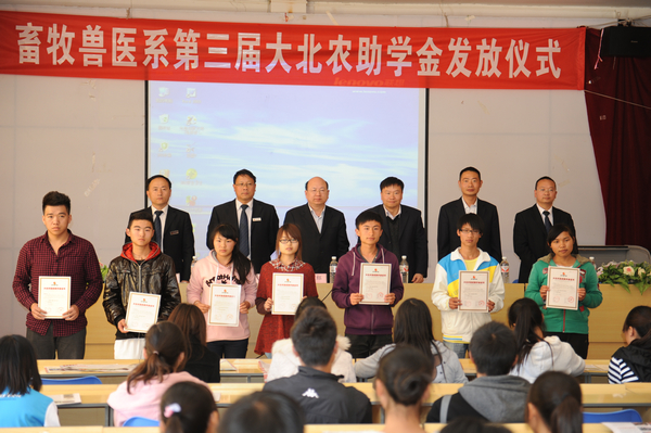 最后,黨總支書記錢林東宣讀了第三屆“大北農助學金” 獲獎同學名單,李秋等25名同學獲得獎勵,助學金總額15000.00元。彭院長、潘副總裁等領導為獲得大北農助學金的同學頒發了榮譽證書。獲獎同學代表在發言中感謝學院為同學們提供了良好的學習和創業平臺,感謝企業的關懷,決心用實際行動來報答各方的關心。(畜牧獸醫系 黨委宣傳部 供稿)