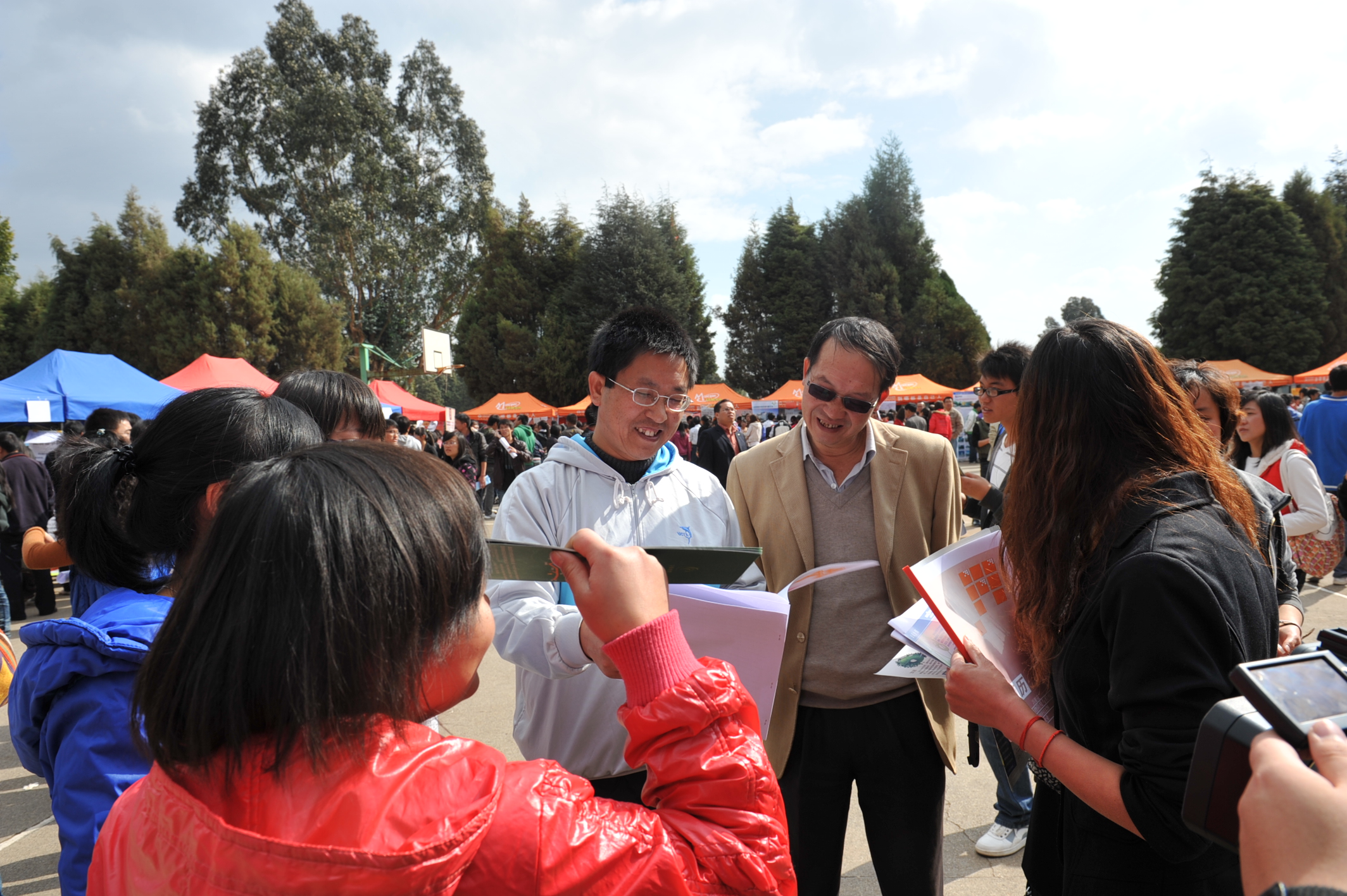 黨委書記崔金賦在招聘會現場與畢業生交談