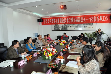 歡迎會上,俞浩副院長向客人介紹了我院悠久的辦學歷史和光榮的革命傳統;介紹了學院現有辦學規模、教學科研、質量工程、實訓基地;著重介紹了省級示范性院校建設的進展情況,我院獲省教育廳批準今年可在東南亞國家自主招生的情況,受省農業廳委托幫助柬埔寨建設“現代農業示范園”的情況。俞副院長強調在示范性院校建設中希望走在國家級重點院校的云南機電職業技術學院給予經驗交流與友好合作。
