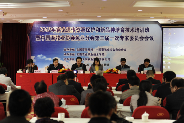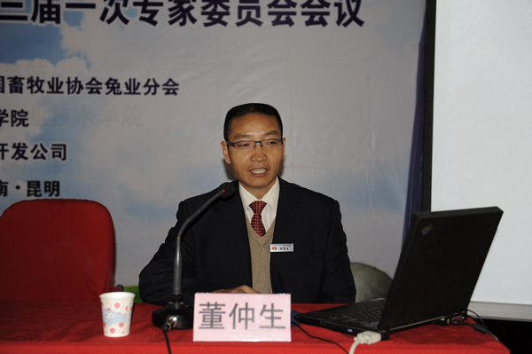 隨后,“2012年家兔遺傳資源保護和新品種培育技術培訓班”和“中國畜牧業協會兔業分會第三屆一次專家委員會會議”同時進行。期間,畜牧獸醫系董仲生教授作為專家委員會的委員,作了《云南兔業資源優勢》的報告,介紹了近三年來實施《家兔真菌病引種凈化試驗》和《家兔真菌病原場凈化試驗》的進展情況。