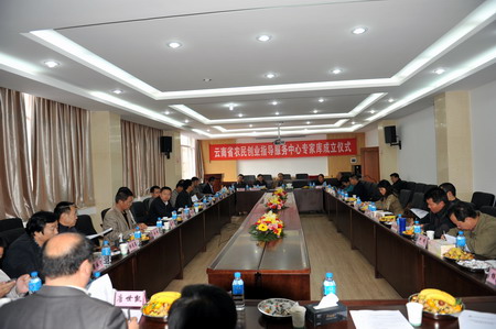 趙剛副書記宣讀了省勞轉辦“關于批準云南農業職業技術學院成立云南省農民創業指導服務中心專家庫”的批復,以及“云南農業職業技術學院關于成立云南省農民創業指導服務專家庫的通知”,介紹了專家庫內各位專家及所在單位、職務和主攻方向特長。