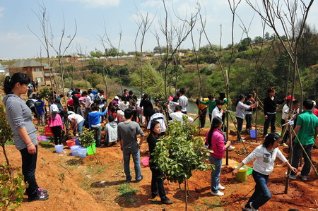 由系黨總支發(fā)起,系團(tuán)總支組織,系相關(guān)專業(yè)的240余名同學(xué)積極響應(yīng),在小哨校區(qū)園林實(shí)訓(xùn)基地種植了120余棵珍貴樹(shù)木——欒樹(shù)。系領(lǐng)導(dǎo)要求所植樹(shù)木成活率要達(dá)到90%以上,每2個(gè)同學(xué)負(fù)責(zé)種植和管理1棵樹(shù)木,并把名字牌掛在樹(shù)上以示負(fù)責(zé)。在相關(guān)專業(yè)老師的指導(dǎo)下,同學(xué)們結(jié)合所學(xué)專業(yè)認(rèn)真準(zhǔn)備、細(xì)心領(lǐng)會(huì)、科學(xué)規(guī)范親手種植,努力為綠化美化學(xué)院作出自己應(yīng)有的貢獻(xiàn)。(蔡永生供稿)